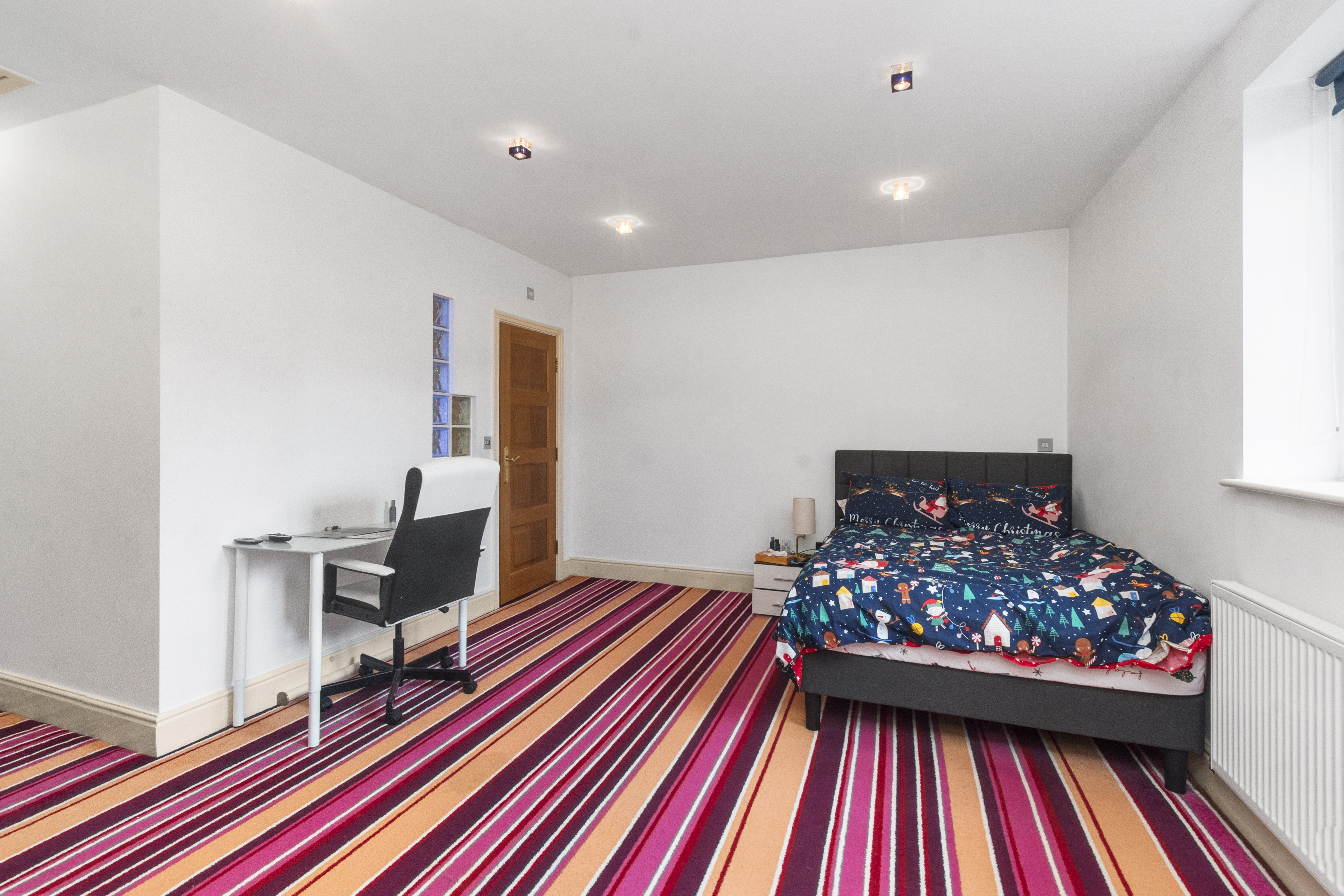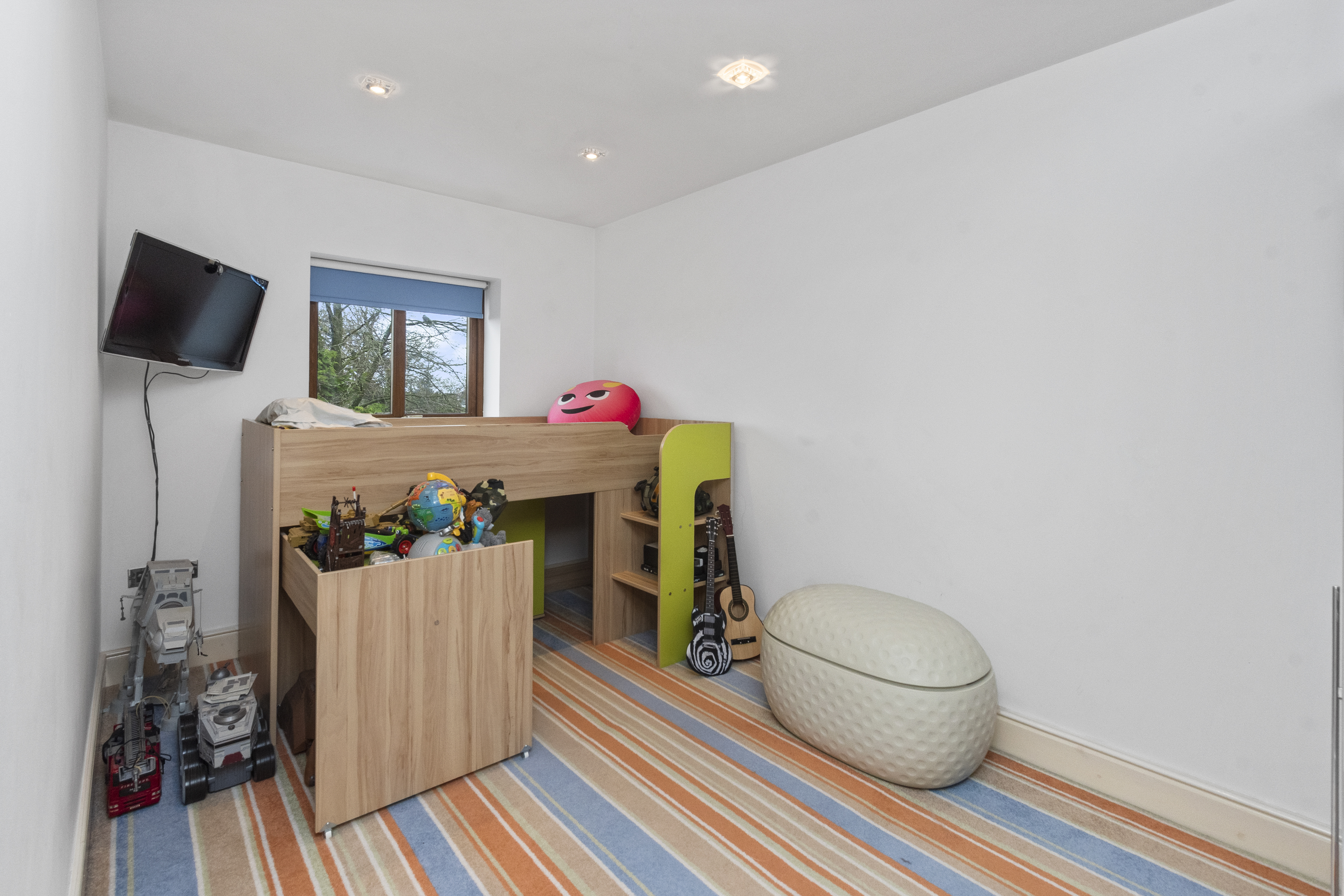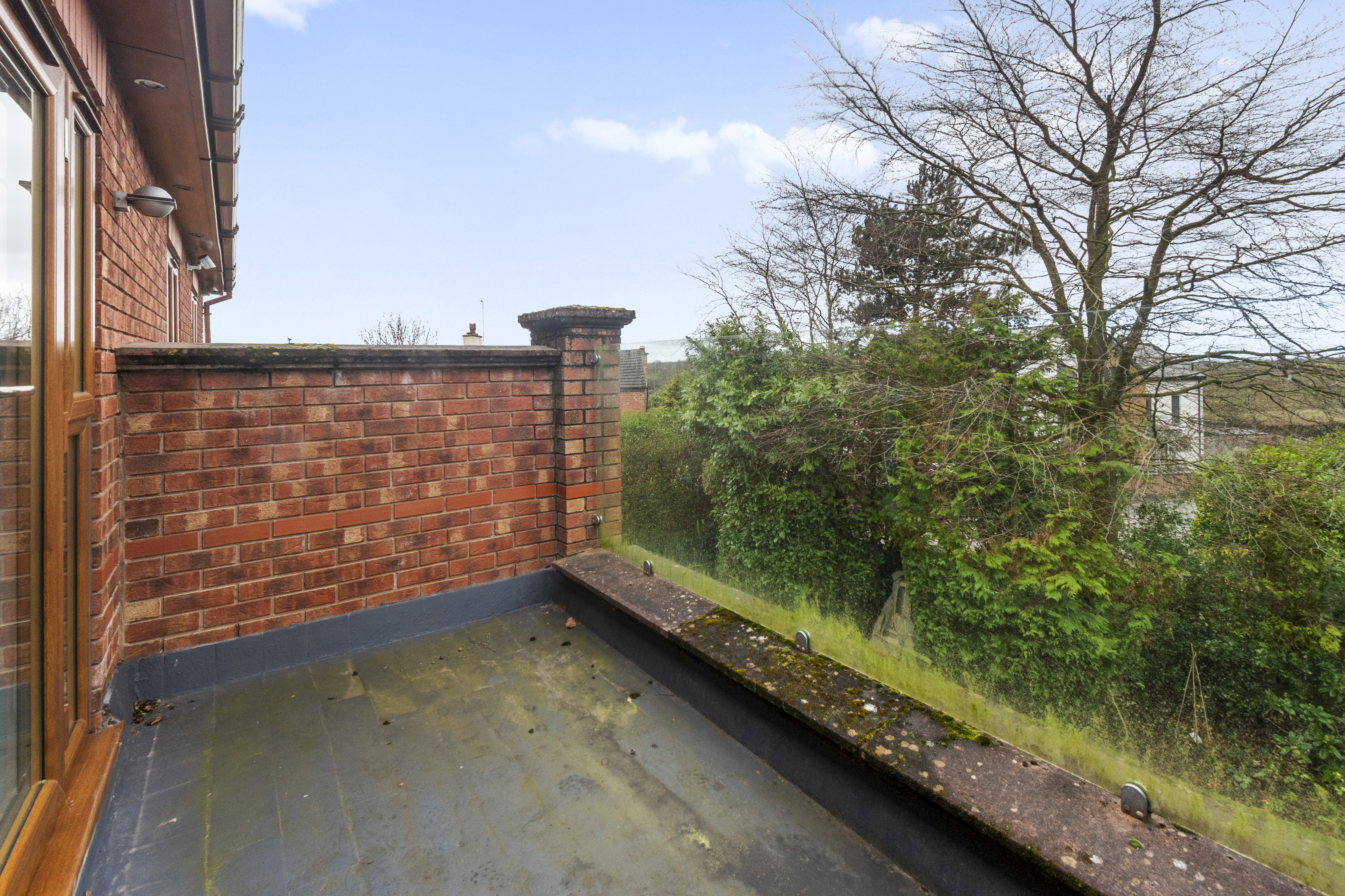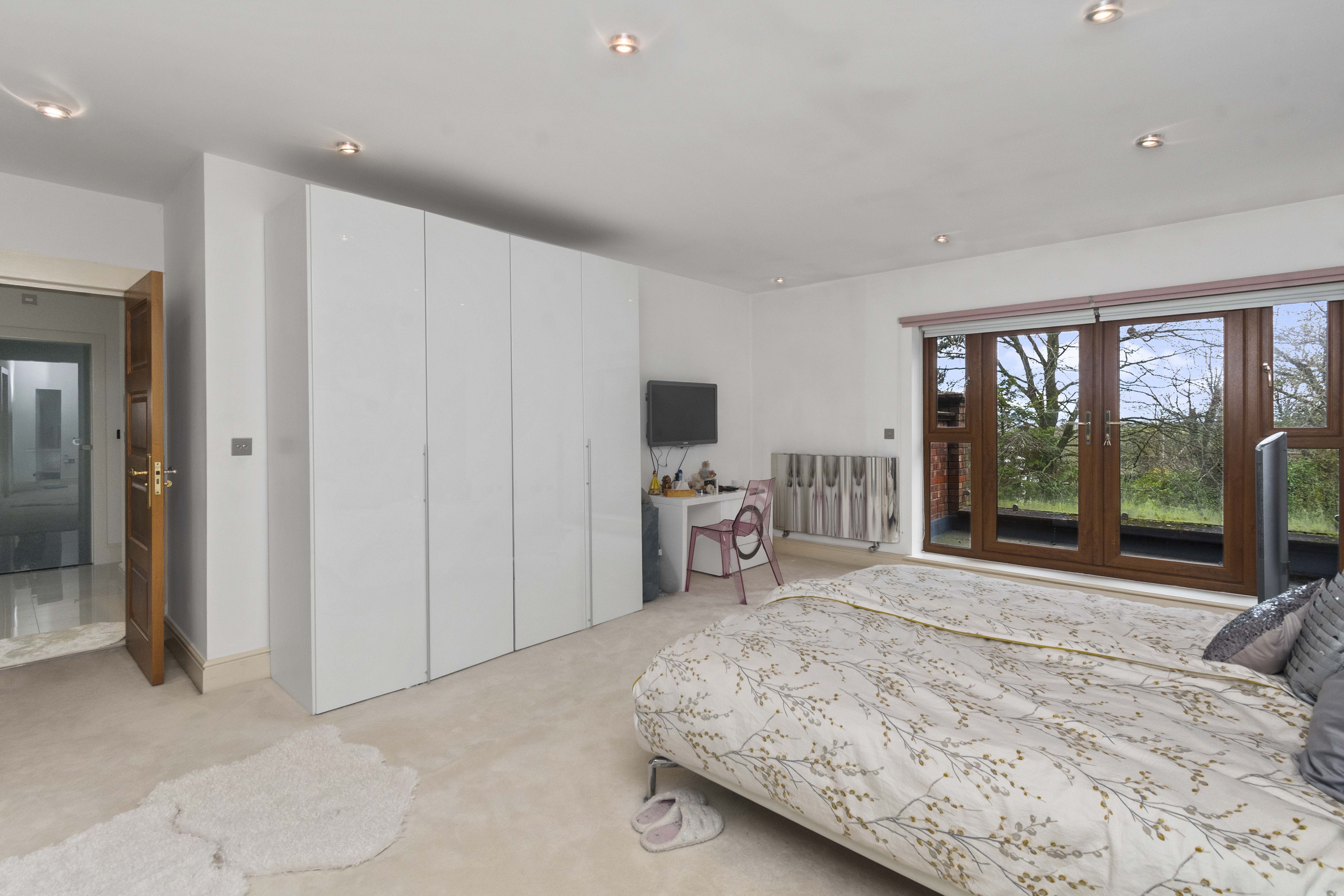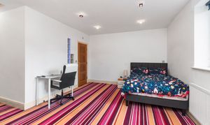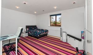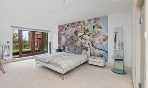 Across the upper floors, there are six generously sized bedrooms, providing ample accommodation for growing families or visiting guests. From the second floor there is a view of the Welsh hills and pastures. The master bedroom serves as a luxurious retreat, complete with a private balcony — the perfect spot to enjoy morning coffee or unwind in the evening.