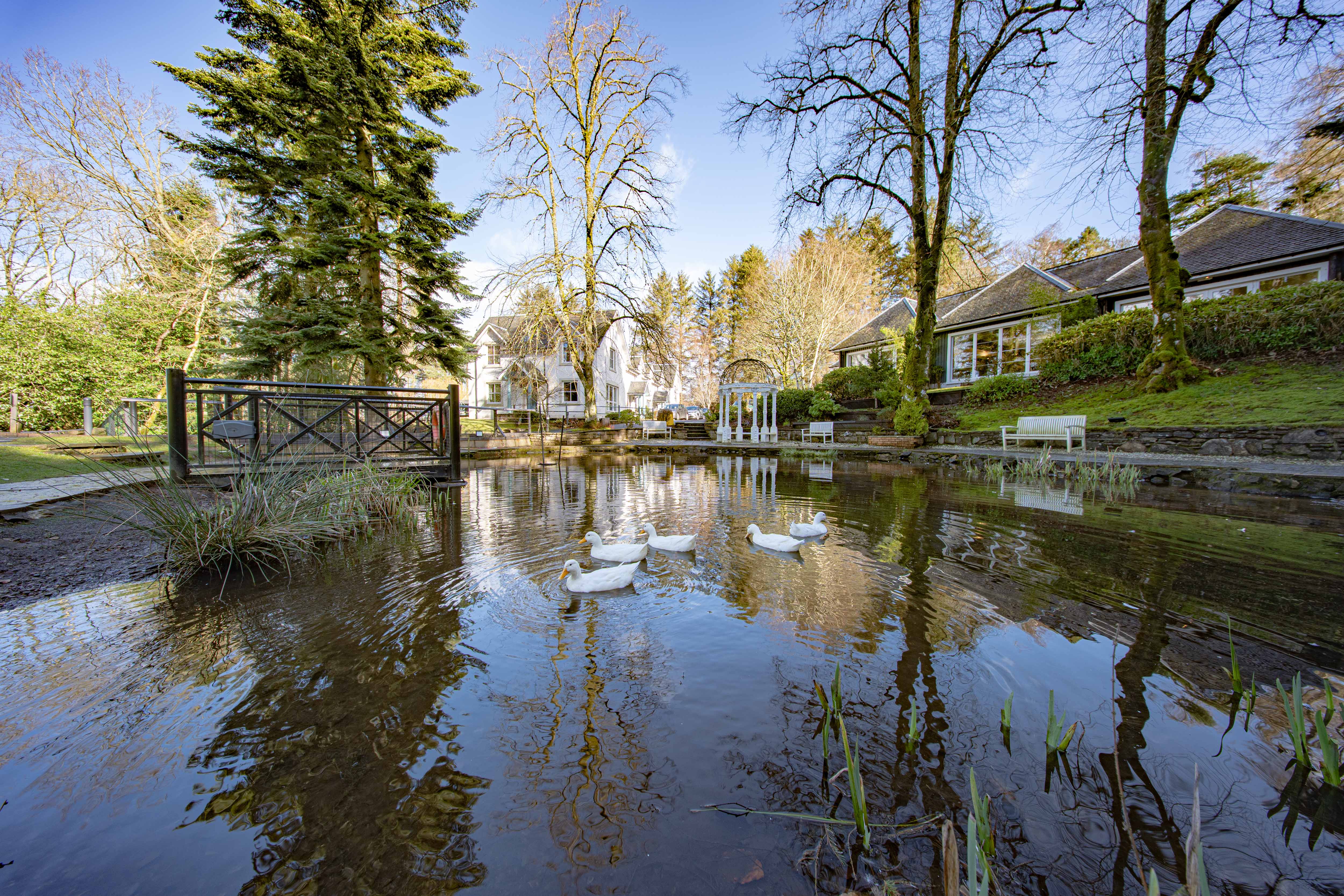 The property has the luxury of being surrounded by 27 acres of stunning landscaped grounds with beautiful scenic woodland and walking trails . A few steps away is the luxurious centre with a heated indoor pool, sauna, steam room, spa bath and a fully equipped gym. There is also the award winning restaurant Monteiths, bar and an in house Gin Distillery.
