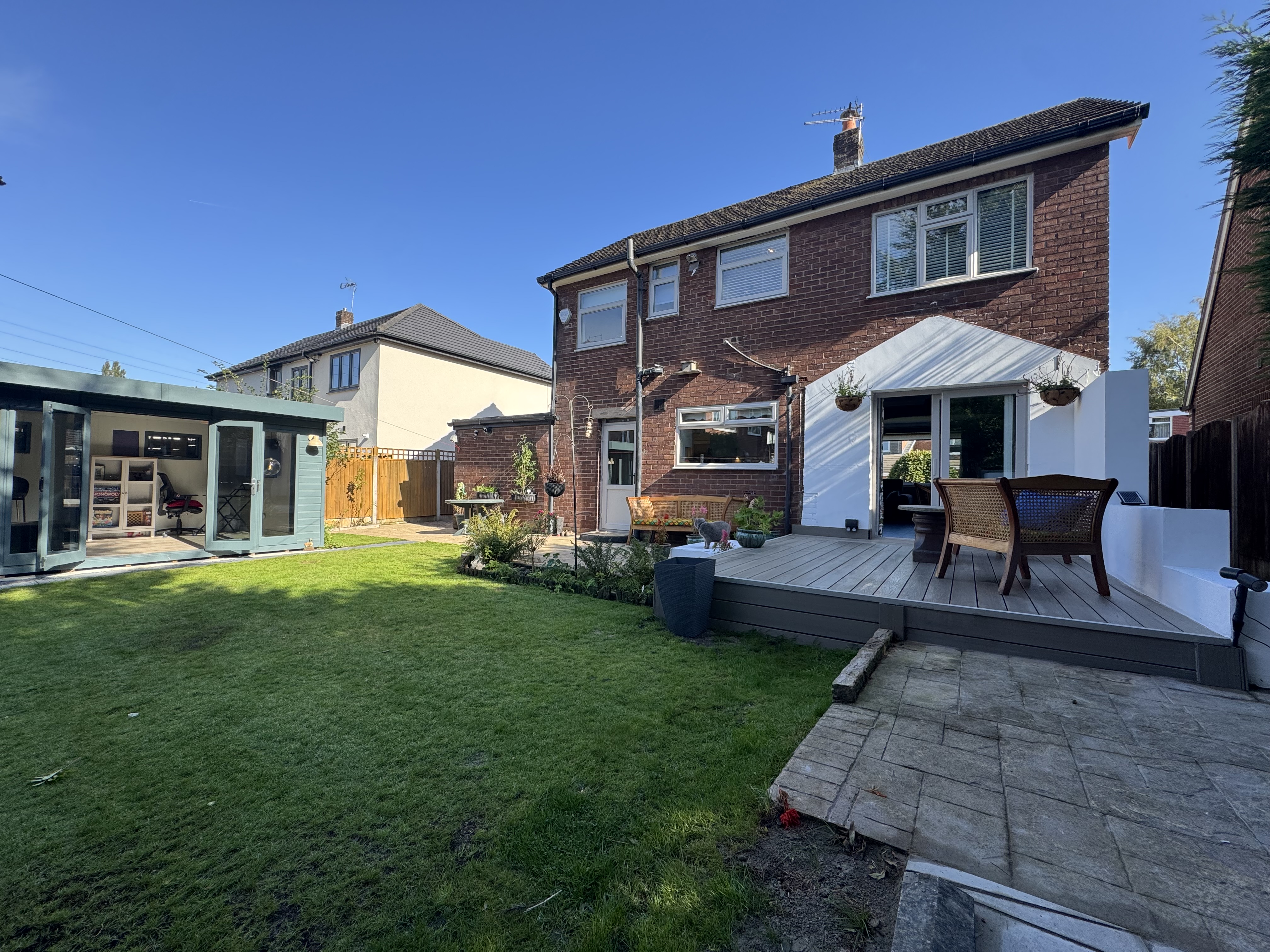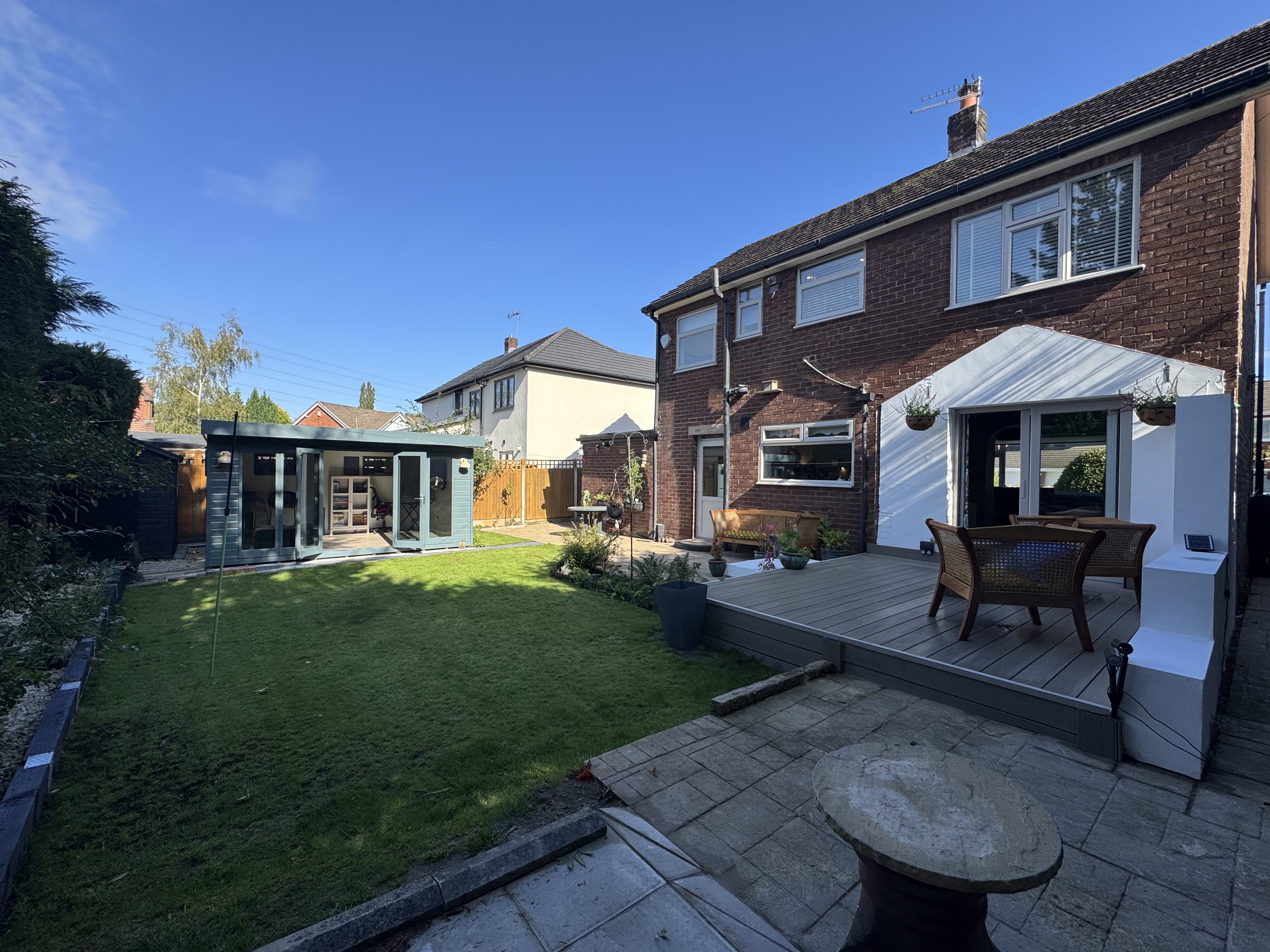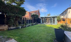 The property boasts a beautifully presented private rear garden, perfect for relaxation and outdoor entertaining. Additionally, a versatile garden room provides an ideal space for a home office or playroom.