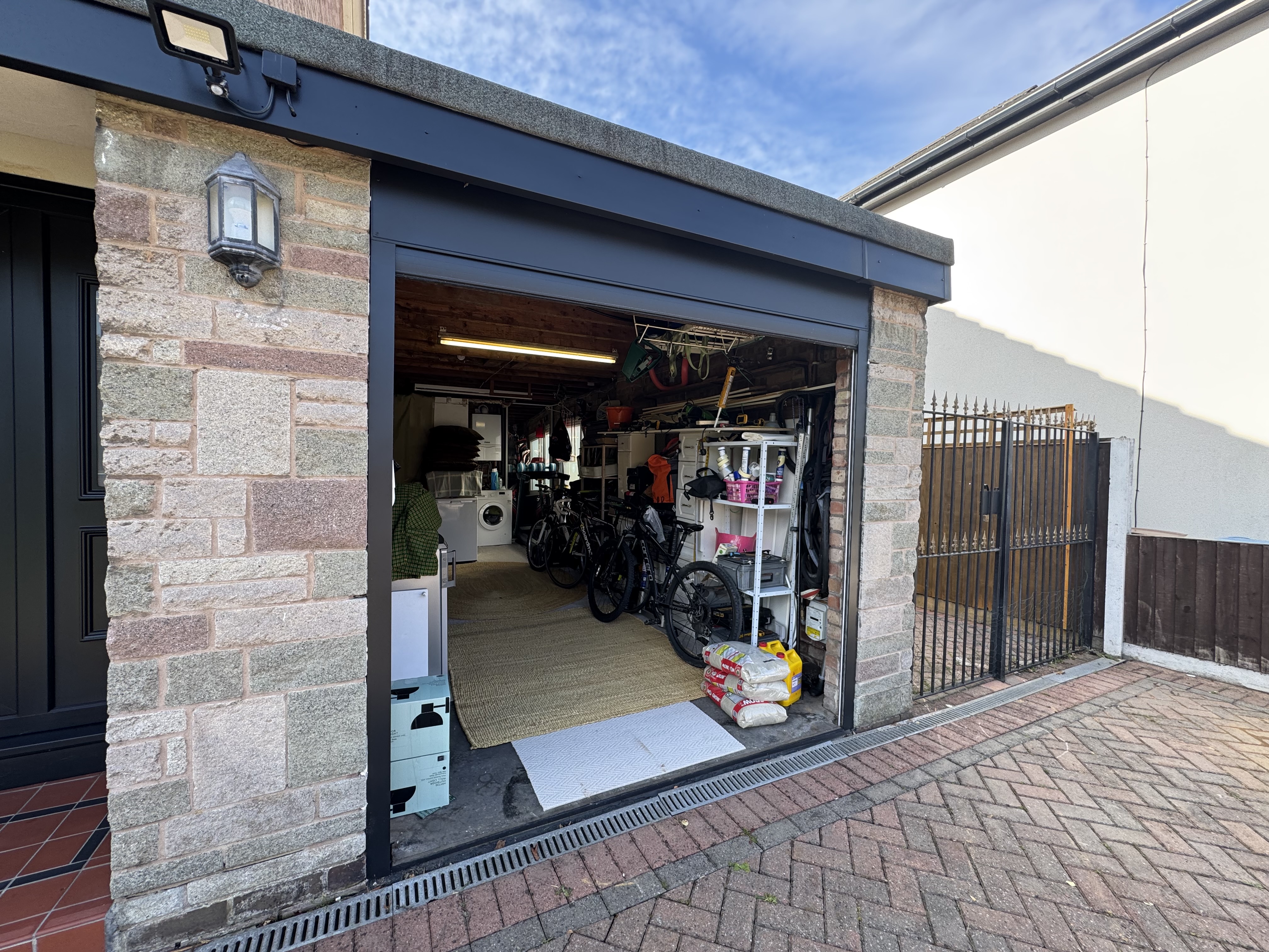 Window to the side elevation. Electric roller shutter garage door to the front elevation. Boiler. Plumbing facilities for a washing machine.