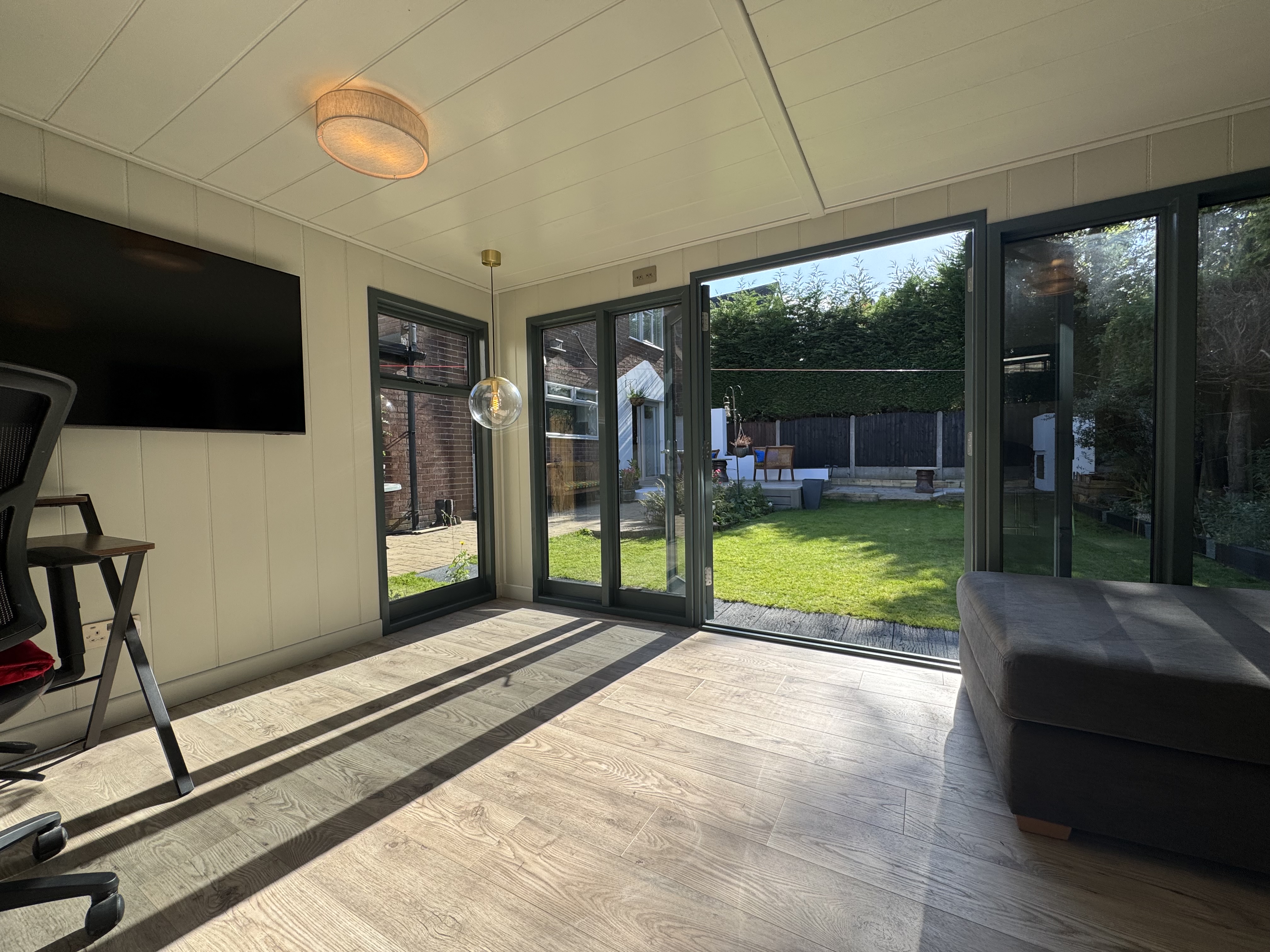 Malvern studio garden room with a versatile use of a home office, cinema room, bar, gym or play room.
