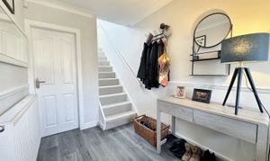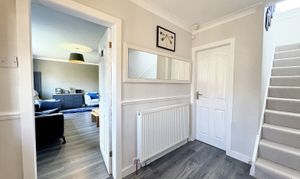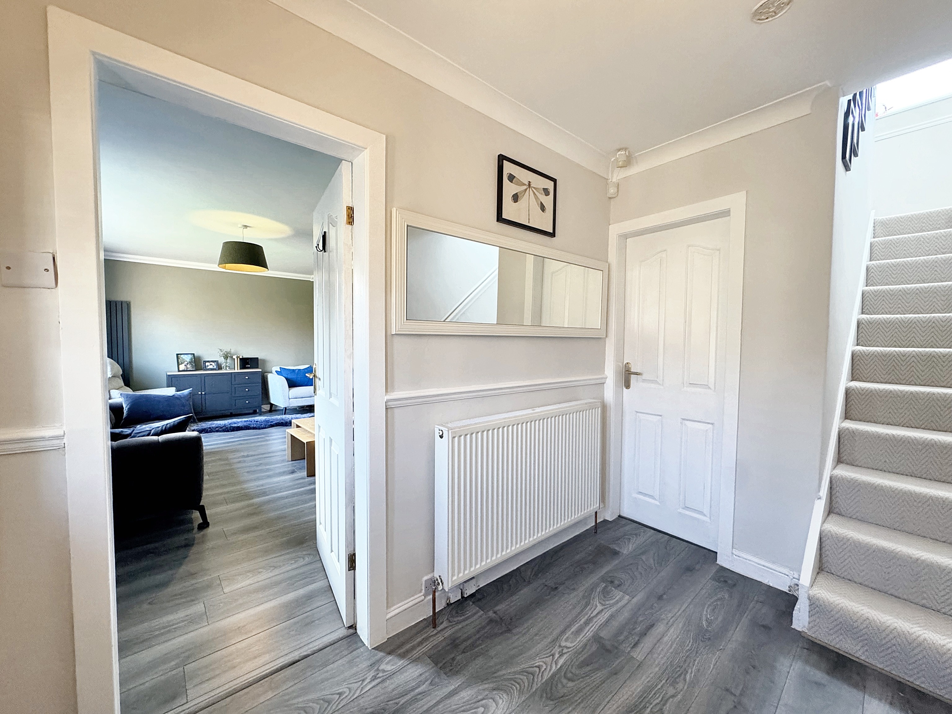 External door to the front elevation with a window to both sides. Staircase leads to the first floor landing. Internal doors lead through to: