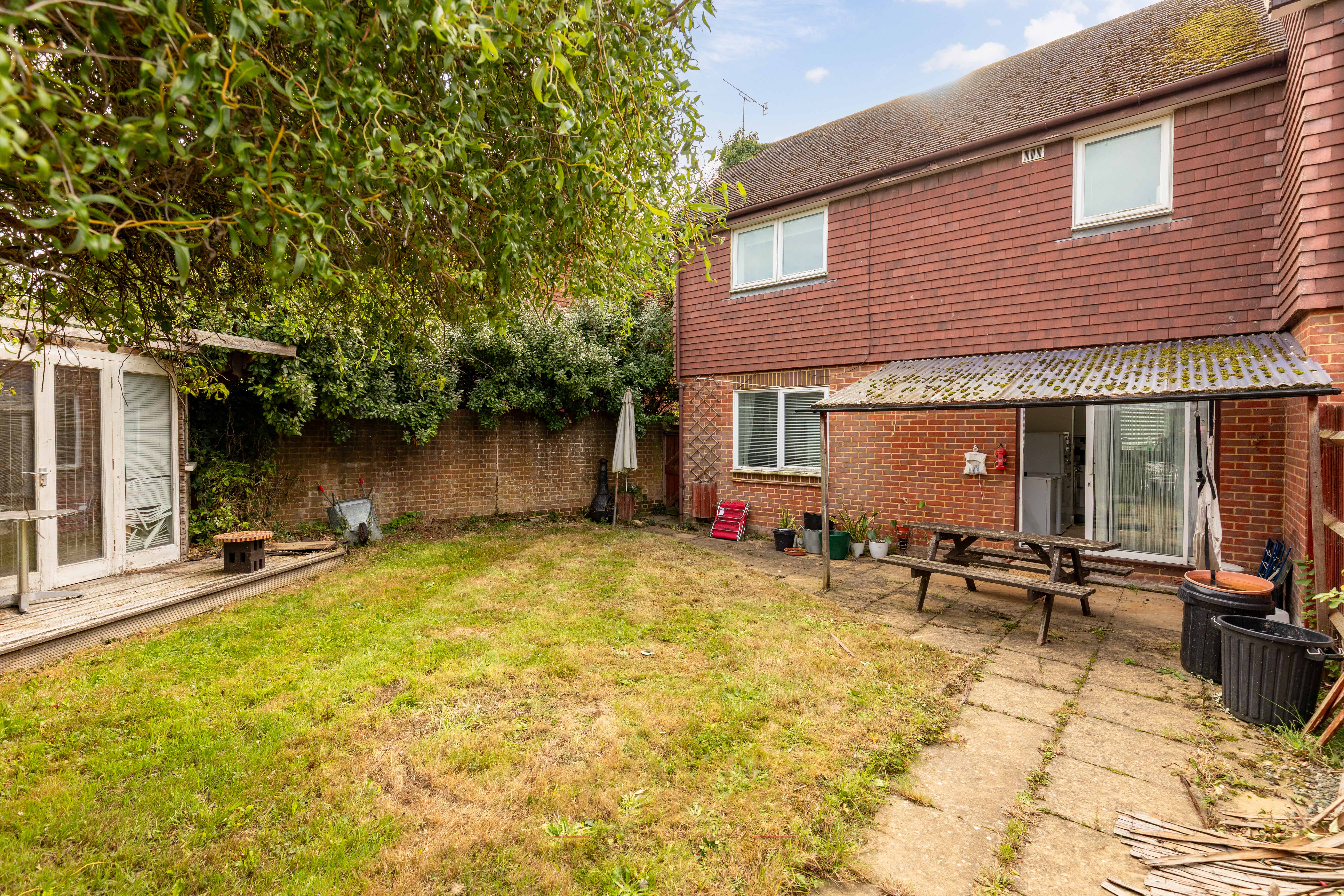 Outside to rear, is the private garden. This is very well sized, being mainly laid to lawn with a patio abutting the property. There is also access to the garage en-bloc and parking, alongside a rear gate for access.
