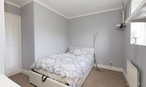 Upstairs, a spacious landing has access to both bedrooms and bathrooms with a welcomed window to front. Bedroom 1 is a fantastic size easily accommodating a super king bed and furniture and another set of dual aspect windows. This space could be altered to house fitted wardrobes or an en-suite with its generous proportions. Bedroom 2 is also a very good size, fitting a double bed and freestanding furniture, with a window overlooking the rear garden. The bathroom is not currently functional and would need replacing immediately, please contact the agent for more information.