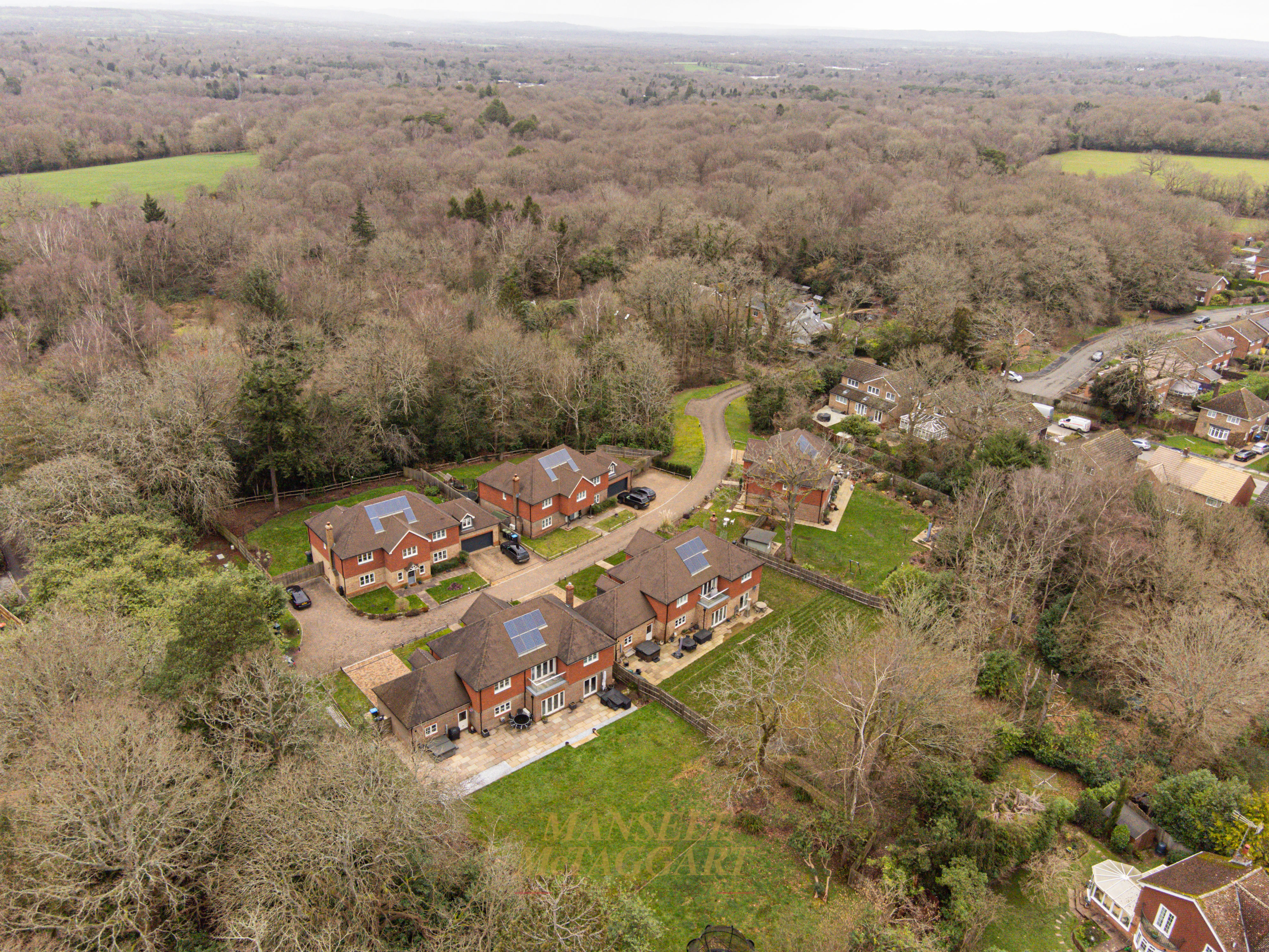 An attractive and beautifully designed five-bedroom detached family home offering approximately 3245 sq ft of spacious and versatile living accommodation, set within a semi-rural location on the outskirts of the popular village of Crawley Down. The property forms part of an exclusive gated development of just five executive homes.