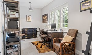 The welcoming entrance hall is a bright and spacious area, featuring large storage cupboards ideal for coats and shoes. To the front of the property is a generous study, overlooking the driveway and offering ample space for a full-size desk and additional freestanding furniture.