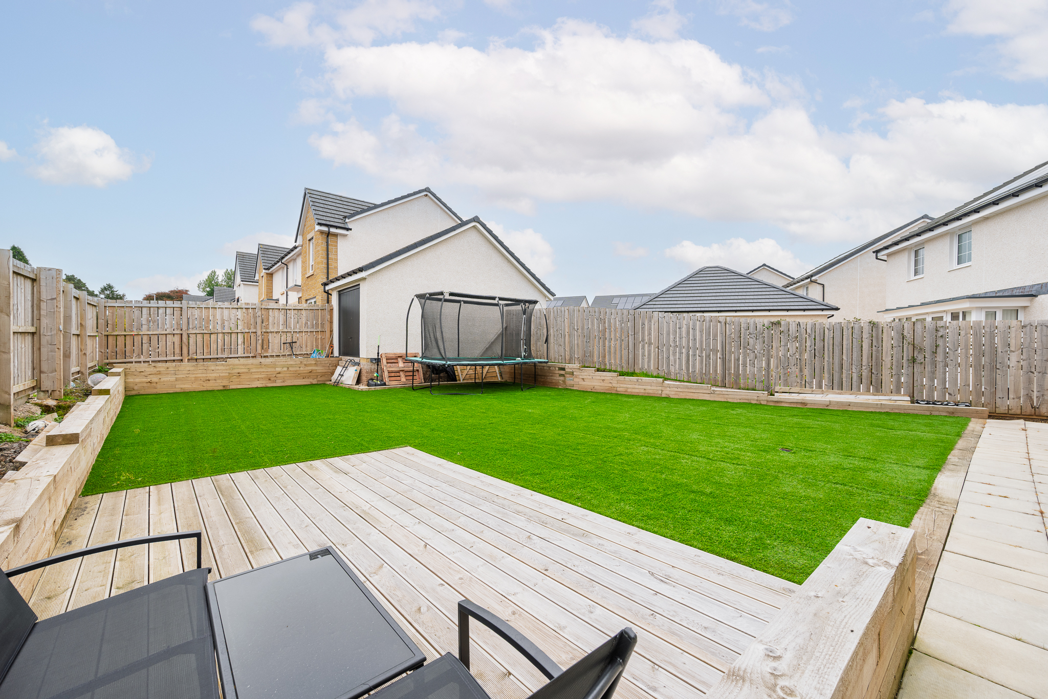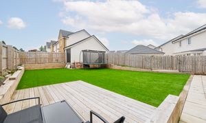 Externally, the property features a monoblock driveway providing ample off-street parking, a neat front lawn, and gated access to the fully enclosed rear garden. Designed with low maintenance and relaxation in mind, the garden has been landscaped with Astro turf, raised flowerbeds, and a decked patio area, perfect for hosting family and friends long into the summer evenings.