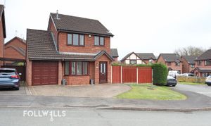 A well presented three bedroom detached house situated on an extremely popular and most convenient development, with easy access for town and main road networks to include Junction 15 of the M6 and the A50. The property is situated on a corner plot within a small cul-de-sac and offers the possibility for further extension to the side elevation (STPP). It currently benefits from a rather useful large rear conservatory/sun lounge with double door access from the dining kitchen.