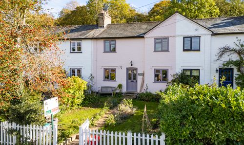 The cottage-style kitchen is a standout feature of the home, boasting a butler sink and ample space for culinary endeavours. The light-filled, dual-aspect sitting room is perfect for entertaining, with a cast-iron period fireplace adding a touch of elegance.
