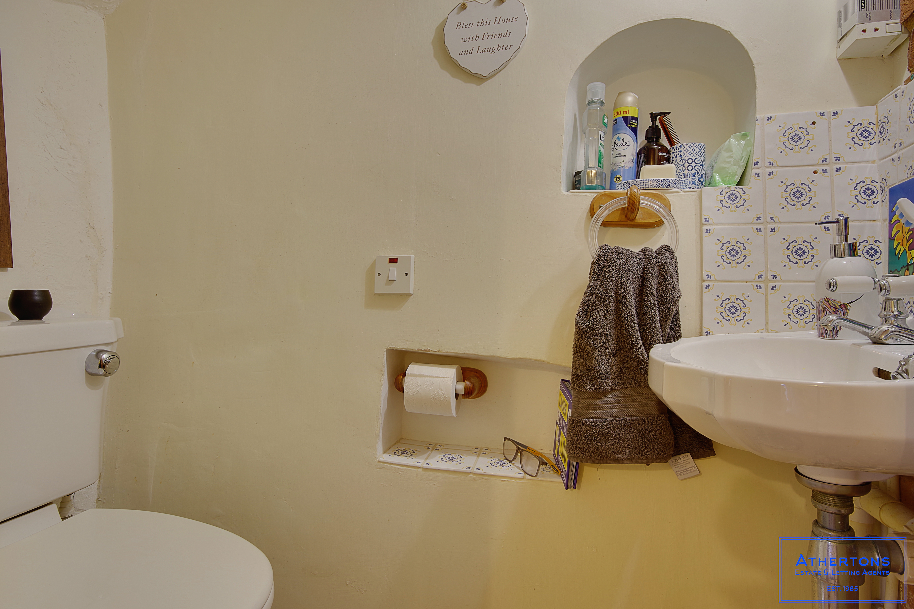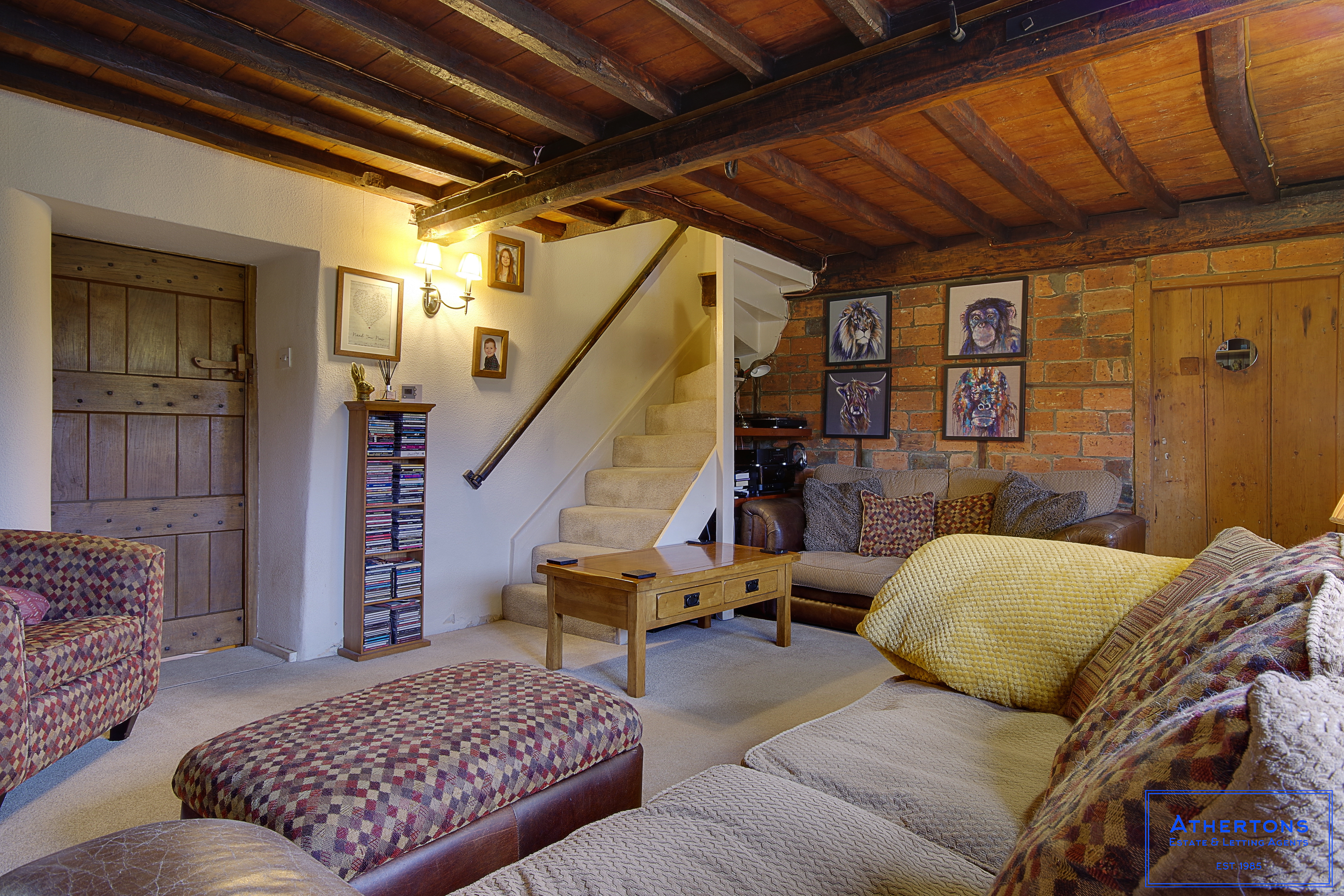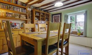 The main cottage immediately impresses, with a generously proportioned entrance hallway leading through to a practical utility room. The cosy lounge is rich in character, featuring exposed ceiling beams and an attractive inglenook fireplace with a wood-burning stove, creating a warm and inviting atmosphere. Adjacent to the lounge is a well-proportioned dining room, ideal for family gatherings and entertaining. The kitchen has been tastefully modernised, offering a range of fitted units complemented by a striking granite worktop. Completing the ground floor is a family bathroom, providing a relaxing space to unwind.