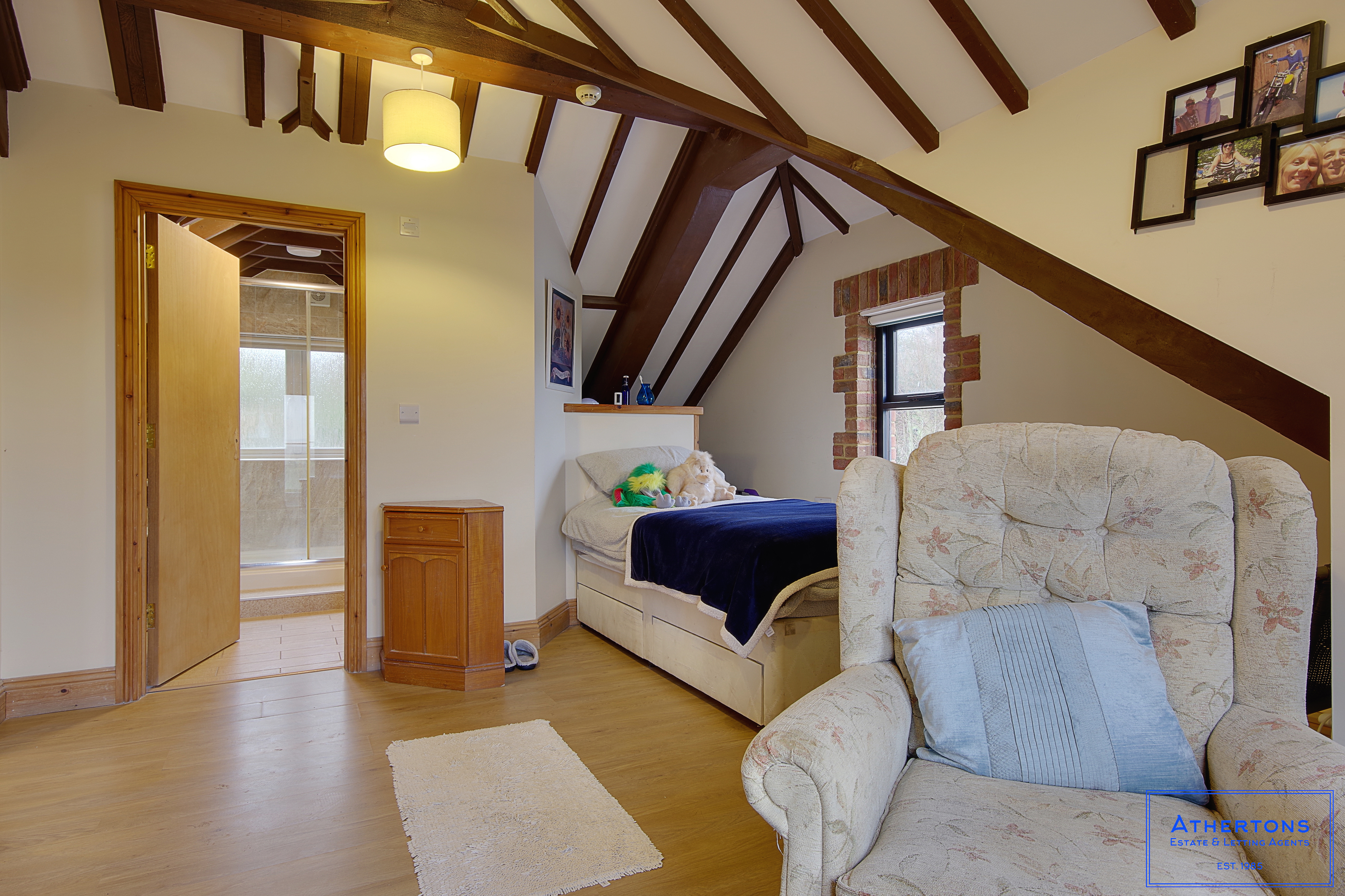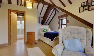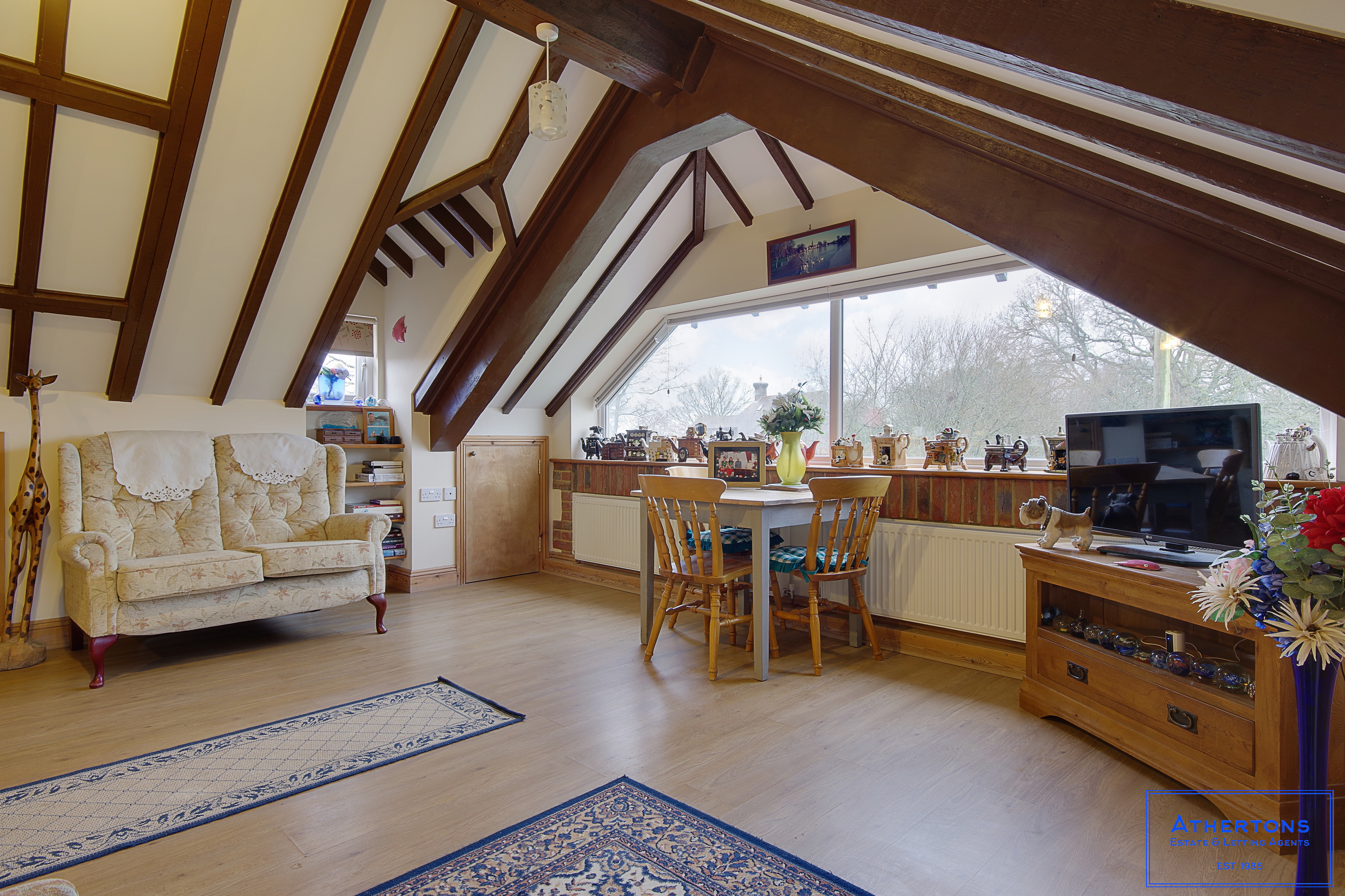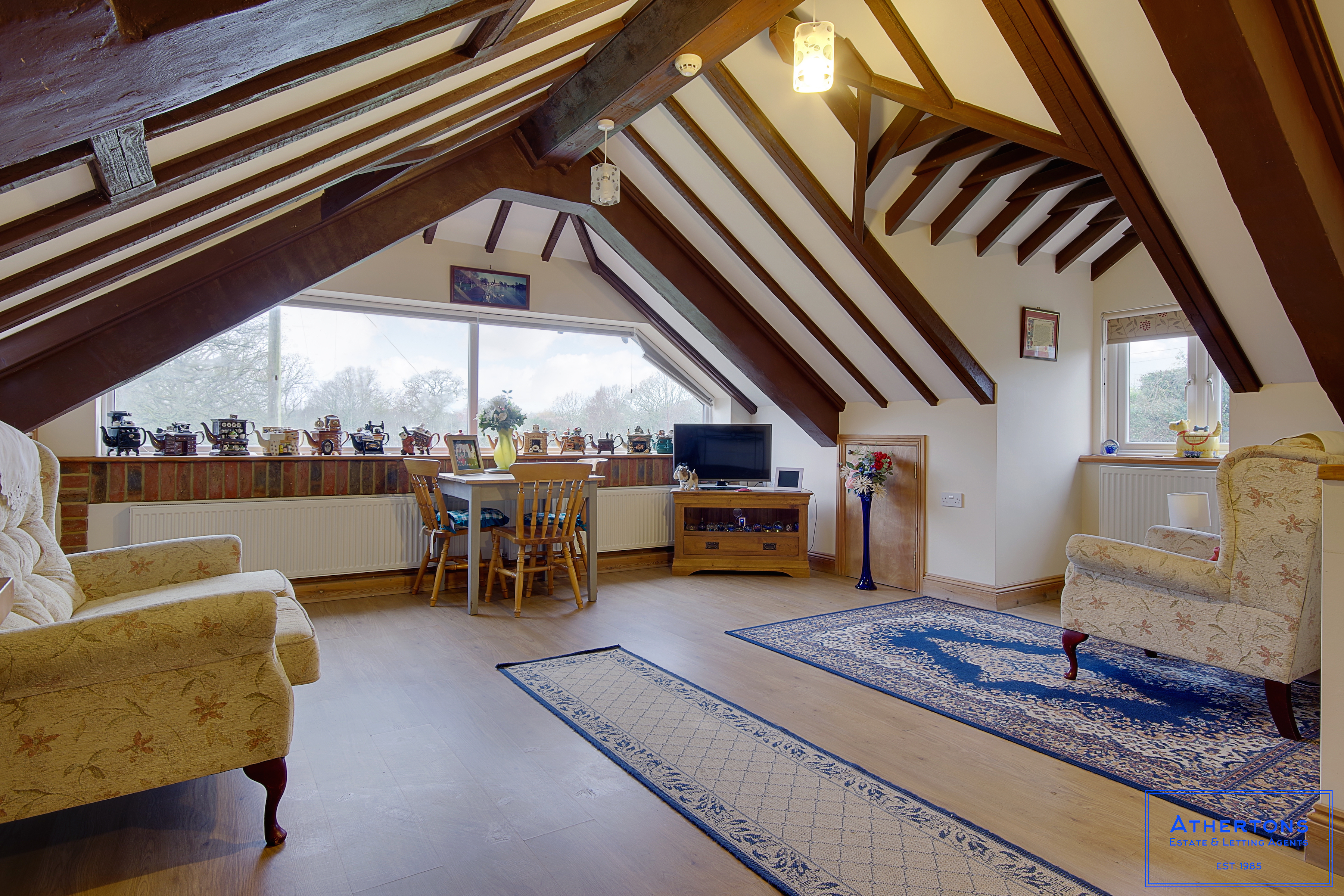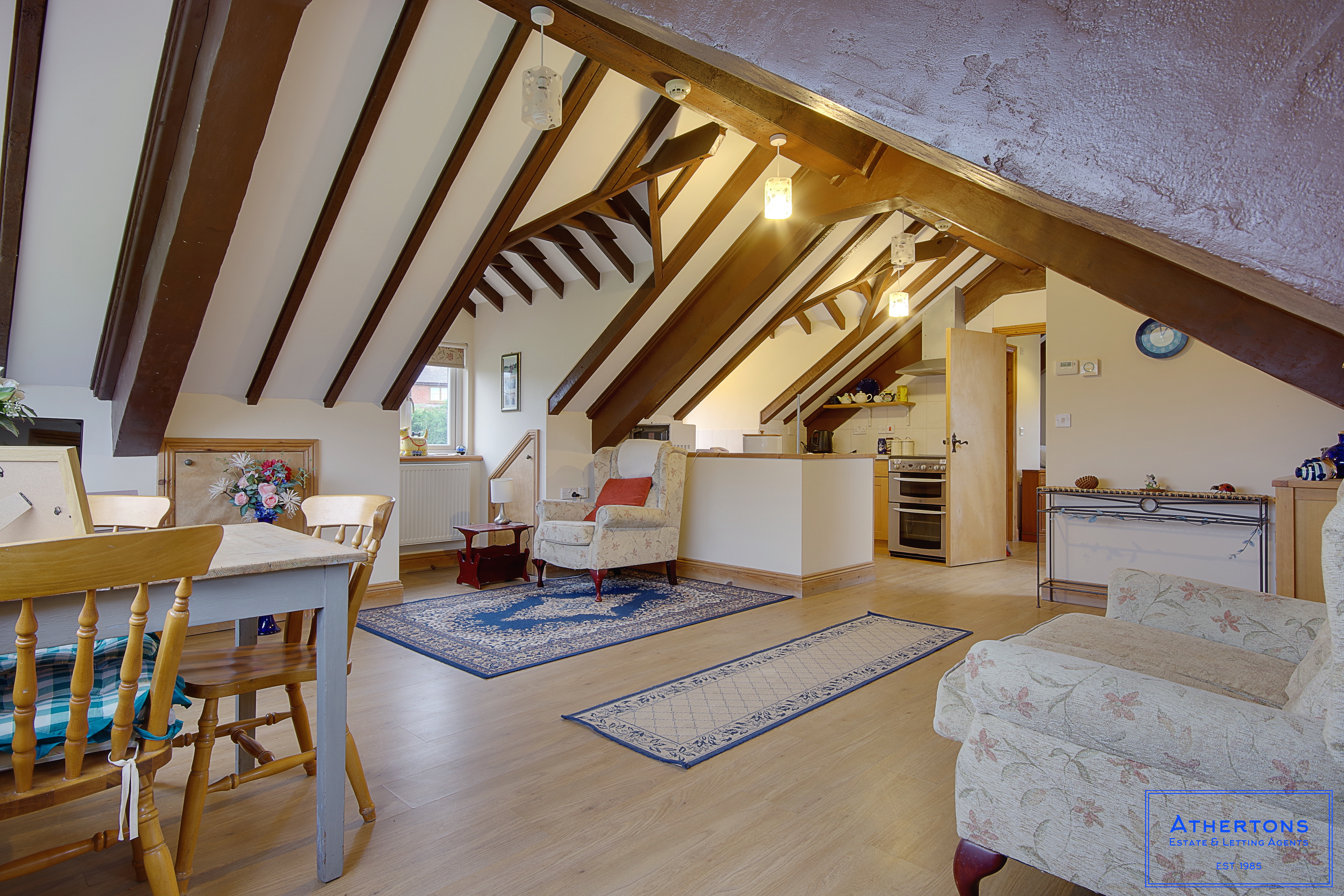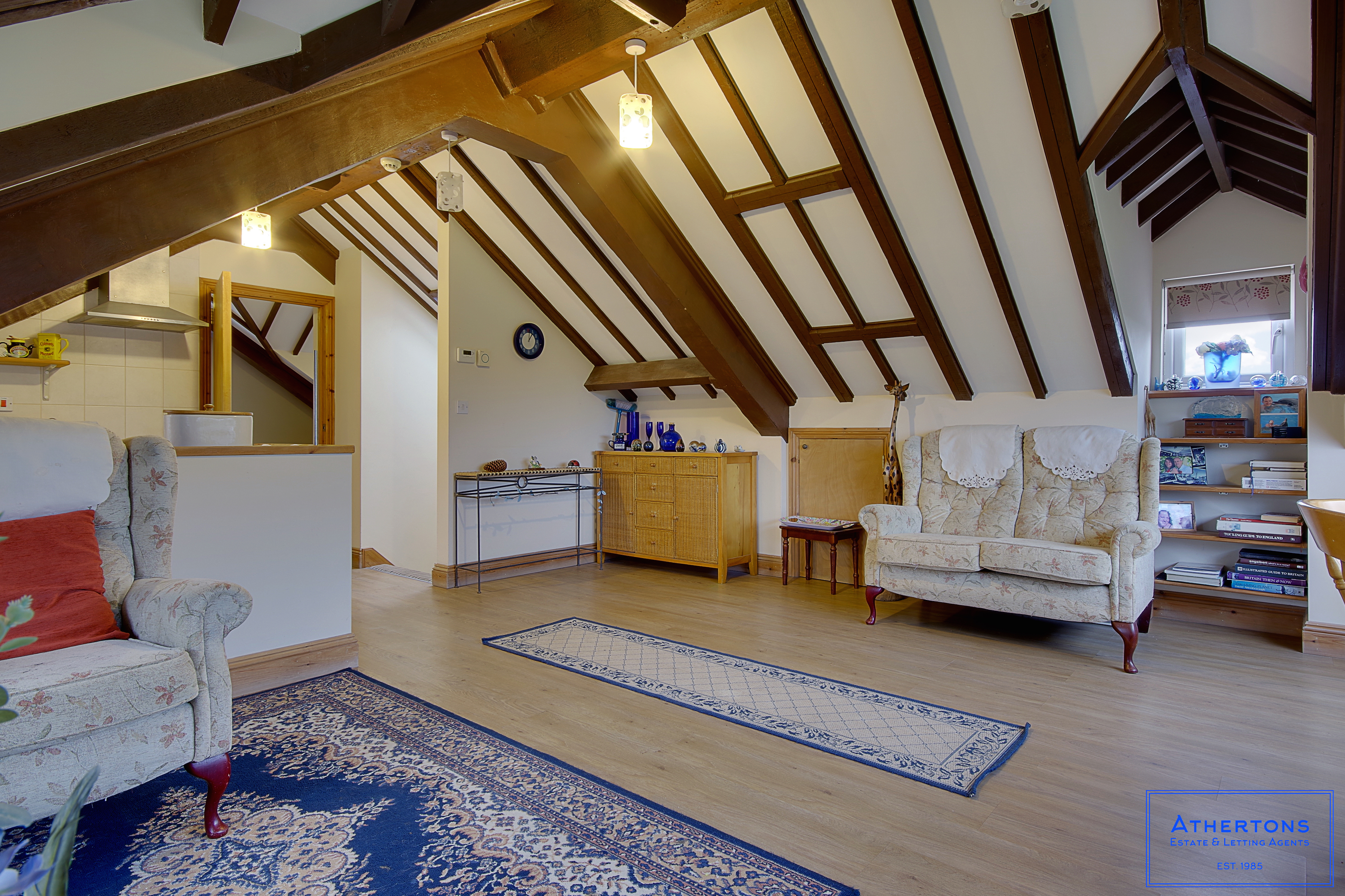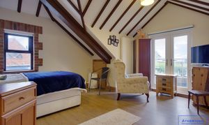 The first-floor annexe is beautifully presented and comprises a bright open-plan kitchen/living area with delightful views over neighbouring fields. There is a separate bedroom with a modern en-suite shower room and a private balcony enjoying exceptional countryside views.