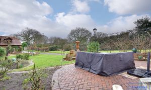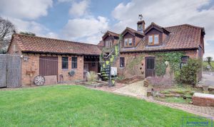 Externally, the property enjoys a generous southerly facing garden, mainly laid to lawn with ample areas for outdoor seating and relaxation. A charming stream runs along the end of the garden, enhancing the tranquil setting.