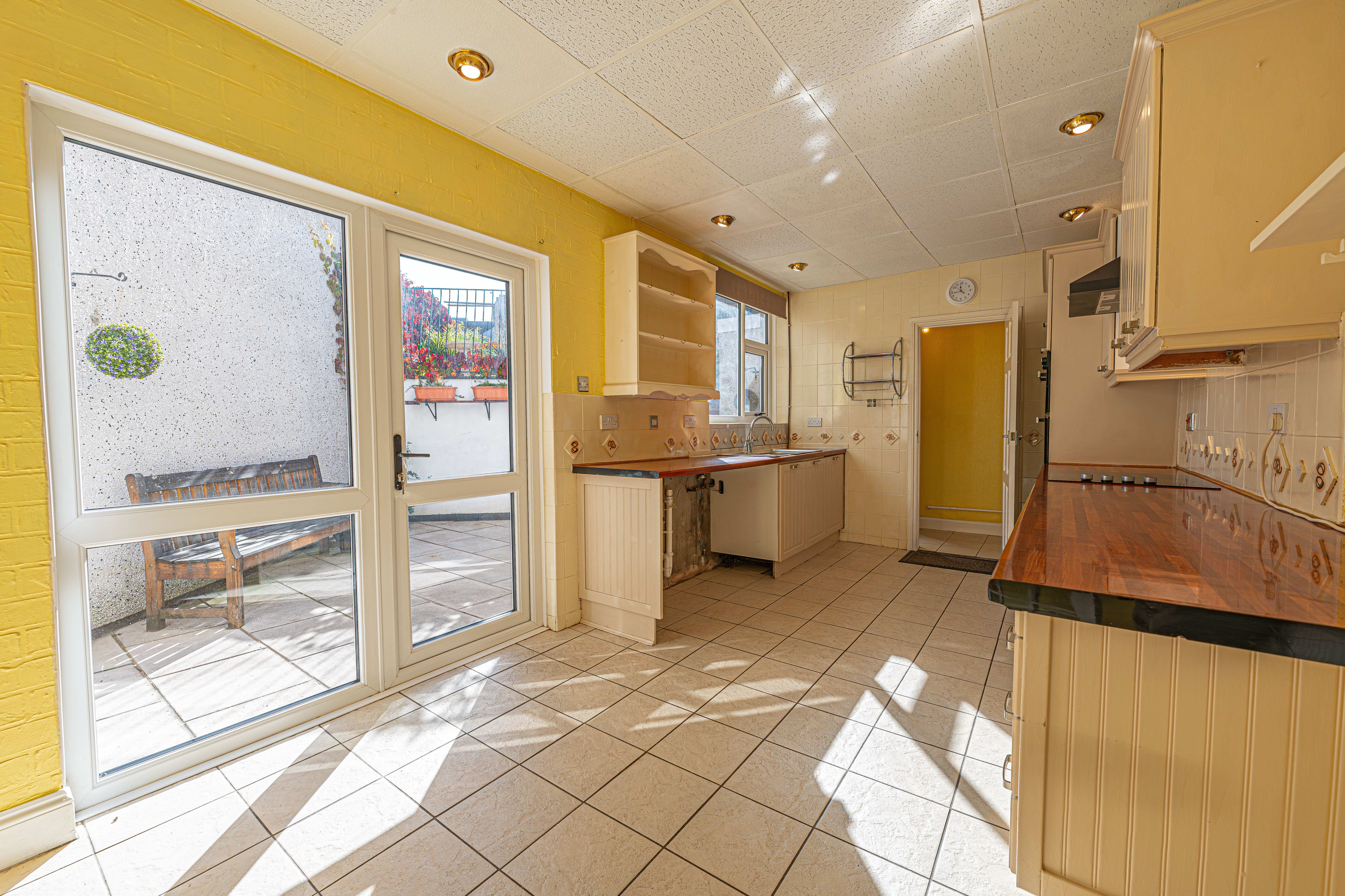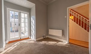 We enter this lovely family home to the front, where we can find find two well sized reception rooms from the hallway, which offer great flexibility for lounging, dining and entertaining guests. The kitchen is also found from the hallway and features a spacious open plan design, and can also accommodate a dining area or breakfast nook, with French doors that open to the garden to flood the room with natural light. In addition to the large size, the kitchen has great storage options and several integrated appliances, with further storage and utility space available from under stairs cupboards in the hallway. At the rear of the house we can find a small walkway leading to the family bathroom, equipped with a bath suite and overhead shower.