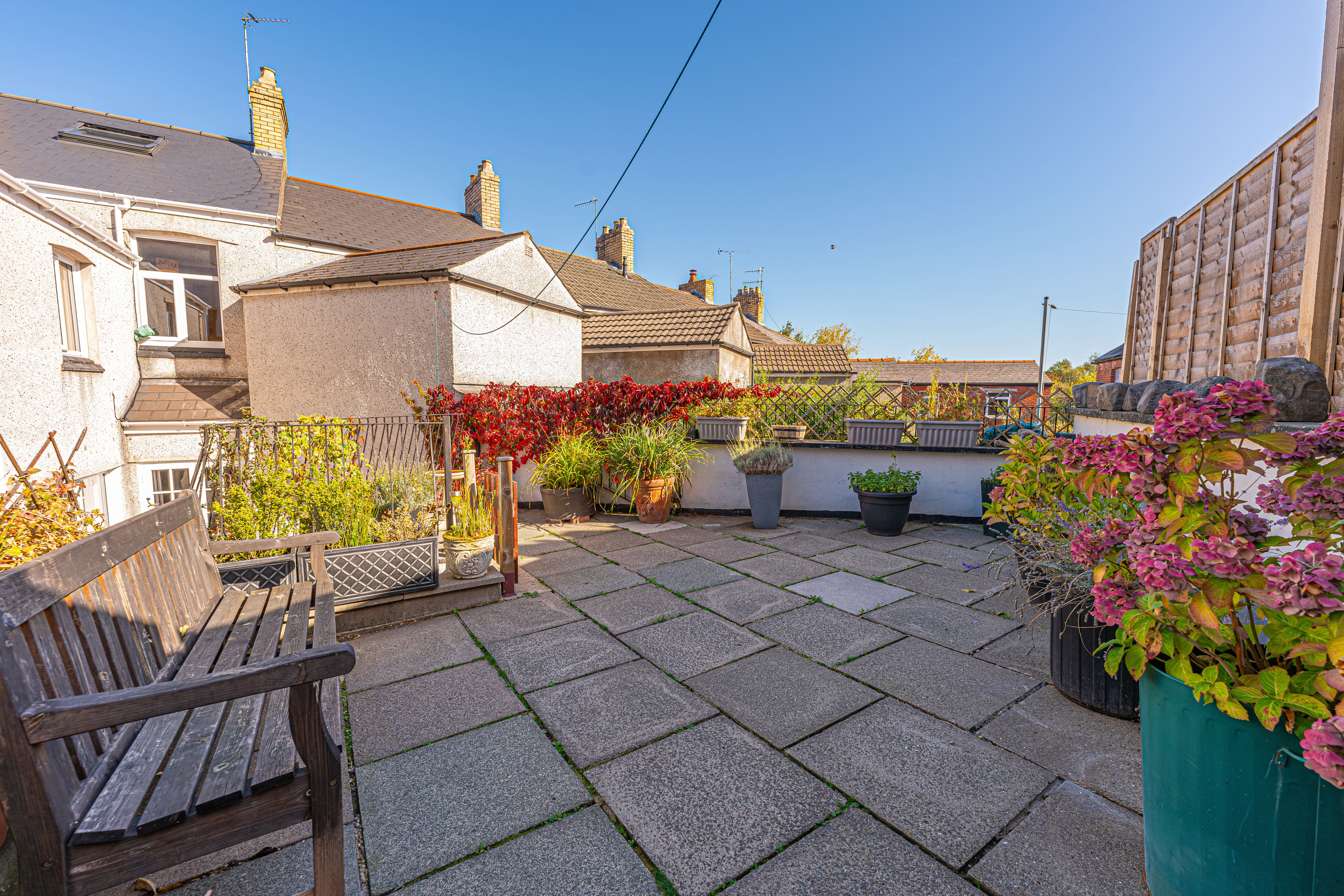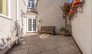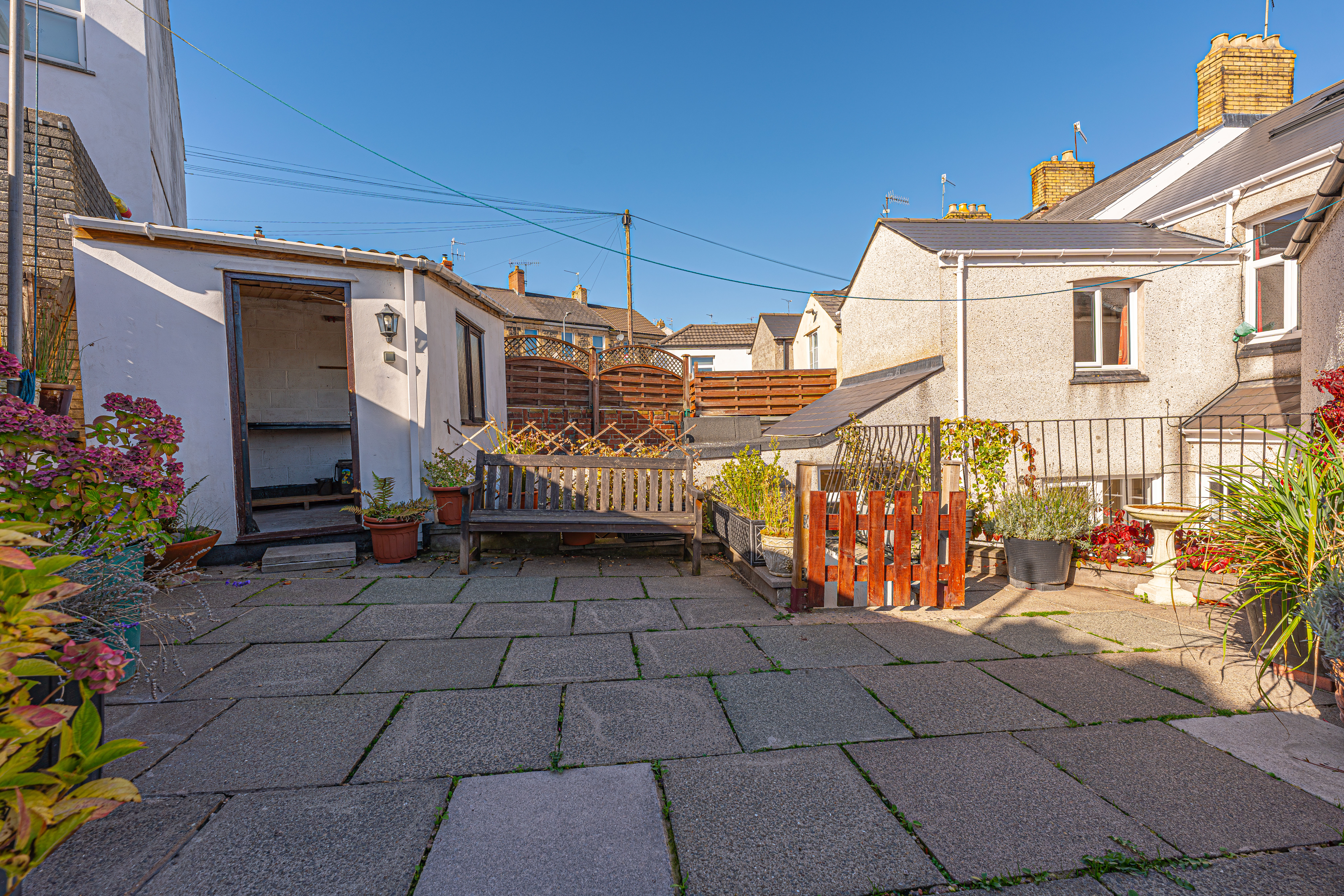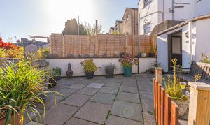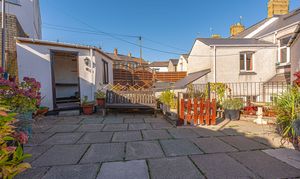 Stepping outside we have the spacious rear patio split across two levels, to offer an impressive amount of outdoor space that is well suited for relaxing in the sunshine, and welcoming guests for tea/coffee or dining al-fresco style. The garden is incredible low maintenance, while also home to a useful tool shed, which provides convenient storage and potential for a home bar conversion. On road parking is available to the front of the house via permit.