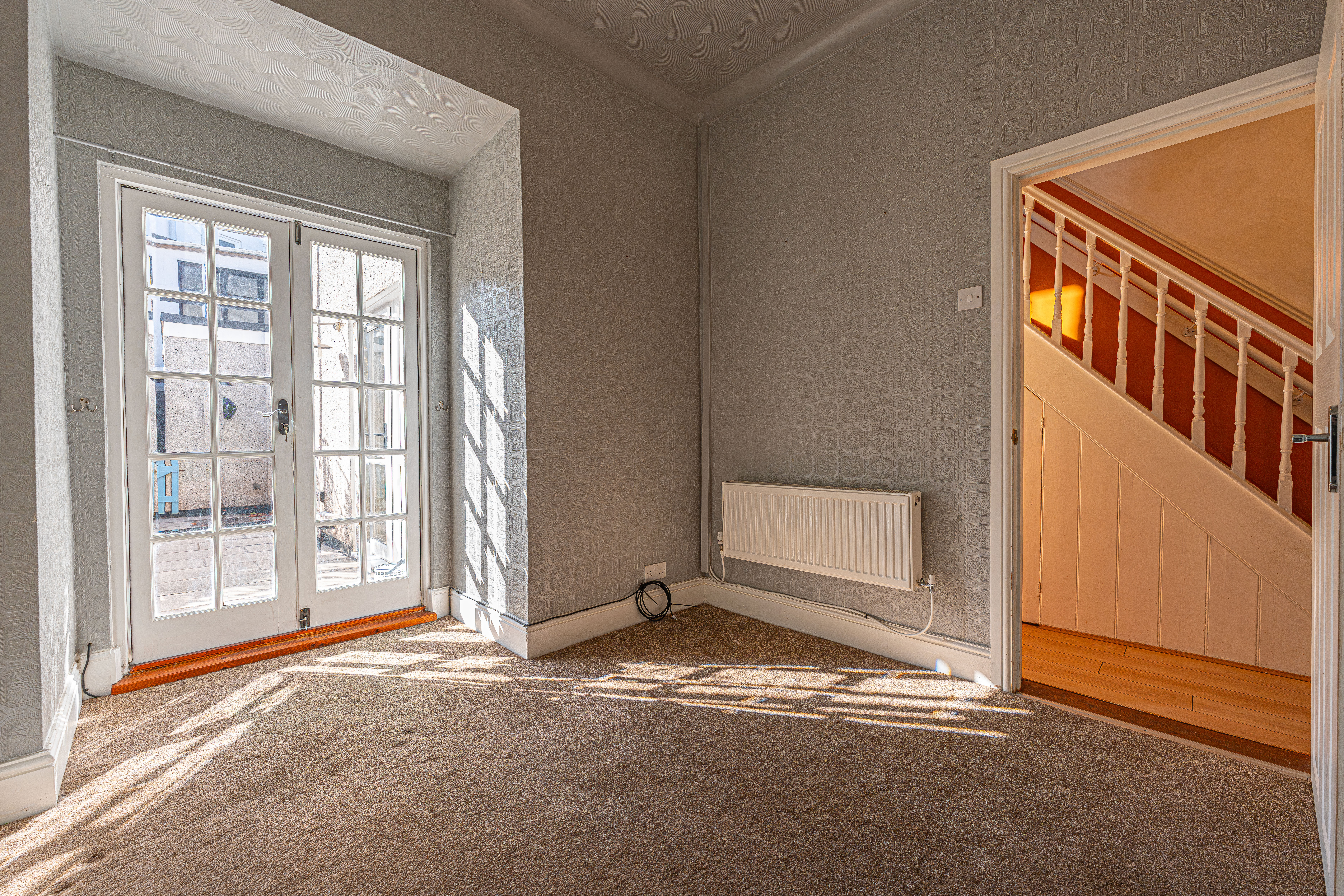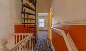 Ascending to the first floor we have the three bedrooms, which are all well proportioned double rooms, with the primary room enjoying multiple windows and a superior size at the front of the house. From the split landing we can also access a spiral staircase taking us up into the attic, which provides great storage.