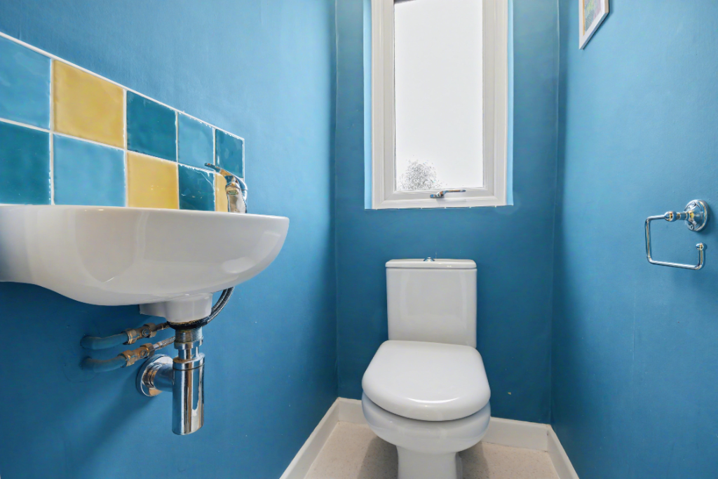 A separate first-floor toilet, perfect for busy families when the bathroom is occupied. Features toilet, sink, and UPVC window.