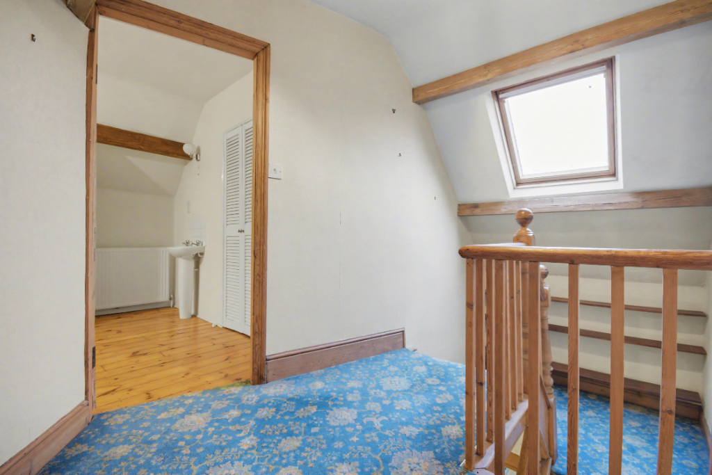 The second floor continues to offer versatility alongside potential. Bedroom four is a highly attractive room with exposed beams, a sink, and convenient storage, making it well-suited for an ensuite conversion. Further loft storage is accessed from this room at door level rather than via a ceiling hatch. Bedroom five also features exposed beams and a dormer window.