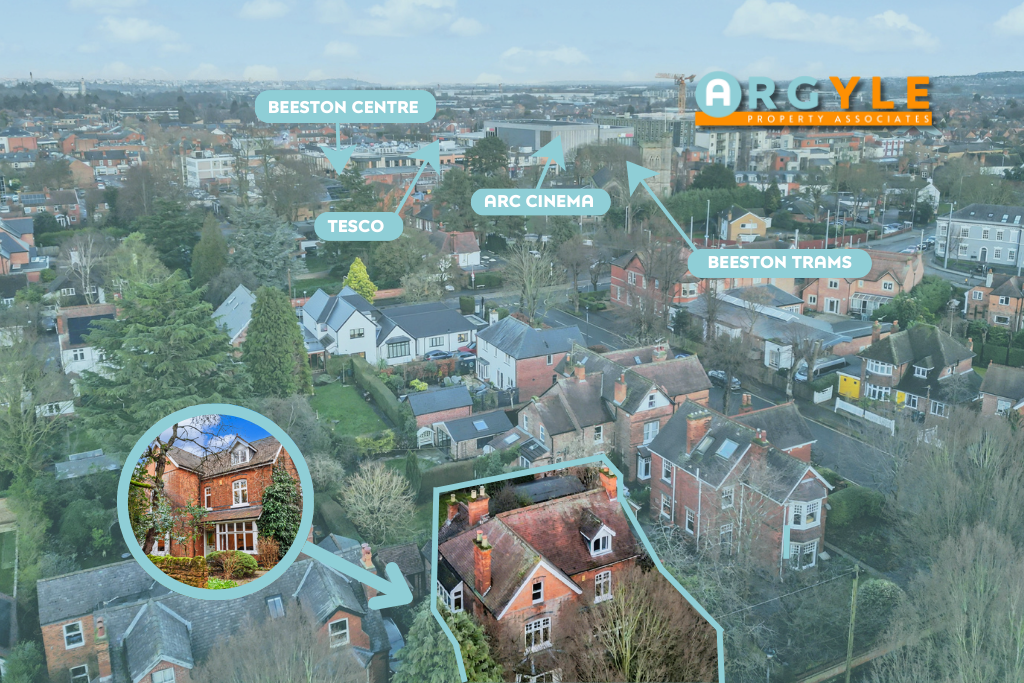 The location genuinely couldn't be much better for Beeston. Elm Avenue is a tree-lined quiet street with a friendly neighbourhood of long-standing residents. Properties like this rarely come up for sale here. You're within the Round Hill Primary and Alderman White Secondary catchment areas, with the M1 less than 10 minutes away and the A52 less than 5 minutes away. Beeston train station is a 15-minute walk or a 4-minute drive, with direct trains to London St Pancras in 1 hour 42 minutes. The main Beeston interchange is a 5-minute walk, with buses and trams to providing easy access into Nottingham as well as serving the Queen's Medical Centre, University of Nottingham, and city centre. The Arc cinema complex, Pure Gym, independent coffee shops, and the weekly market on Beeston Market Square are all just around the corner. Beeston itself has developed significantly over the past decade, becoming a welcoming town just west of Nottingham, with a genuine community feel and considerable investment in local amenities. This family home offers space, character, and exceptional potential in an outstanding location, and it's ready for the next chapter.