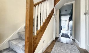 Stairs lead to the first floor accommodation and there is access to a storage pantry and downstairs WC.