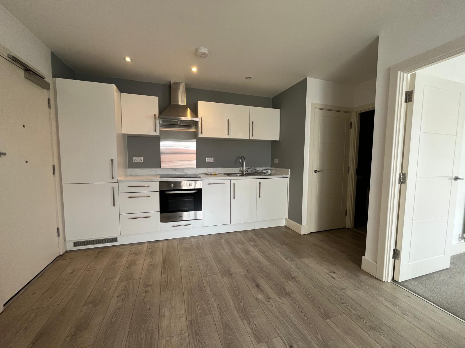 Louis & Co is delighted to bring offer for let this apartment located in the heart of Maidstone, close to Lockmeadow with its cinema and leisure facilities and just a short walk from the banks of the Medway. Maidstone West station is 5 mins walk and Maidstone East and Barracks are also easily accessed on foot. The shops and restaurants of the town centre are all within easy walking distance. Internally the apartment comprises of lounge/kitchen with grey laminate wood floors, white and grey walls and gloss white kitchen units with integrated appliances. The bedroom is carpeted with grey carpet and walls are painted white. The bathroom features white sanitary suite with shower over bath and tiled floors and partially tiled walls. One allocated parking space.