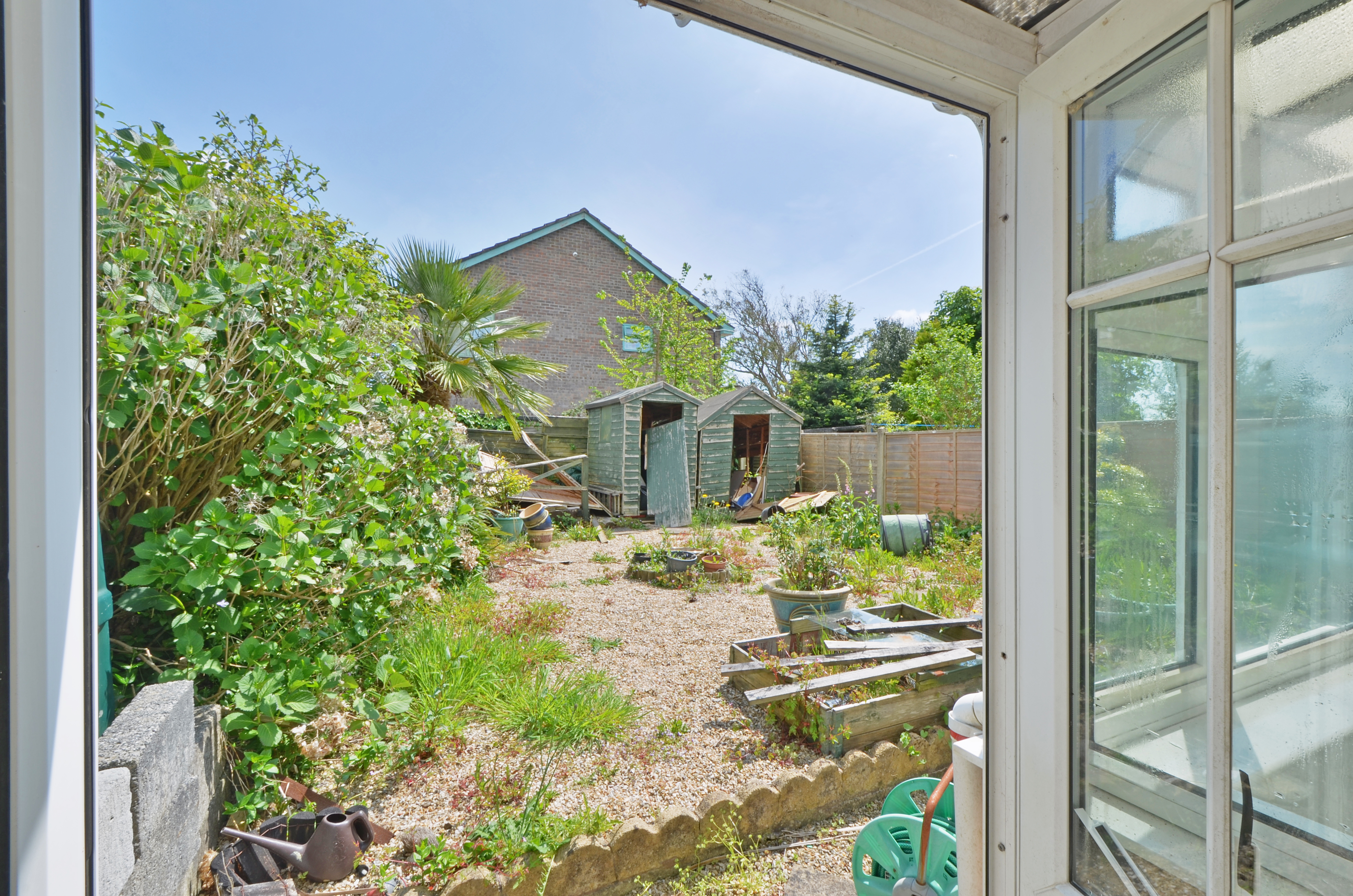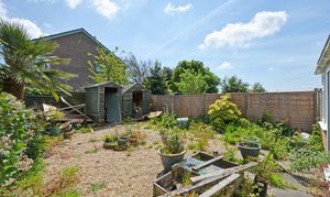 The rear garden is of good size and south east facing, laid with stone chippings and enclosed with timber fencing and established shrubs.