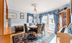 For dining and work-from-home flexibility, the property offers a formal dining room ideal for casual meals or entertaining, and a versatile study designed to suit modern home-working needs. The dual-aspect vaulted sitting room is a showstopper, featuring a dramatic tall arched window and French doors that seamlessly connect indoor living to the garden.