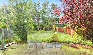 Outside, a generously sized garden provides the perfect setting for outdoor gatherings and relaxation.