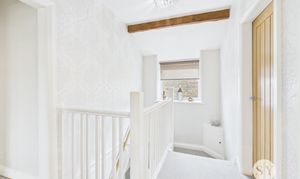 Oak flooring, ceiling beams uPVC double glazed frosted window, panel radiator.