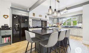 The ground floor features a superb range of living spaces, including three reception rooms. Two are stylish lounges, one enhanced by a feature log burner creating a warm and inviting atmosphere, while the second offers a comfortable setting for relaxation or entertaining. A large snug provides additional versatility, ideal as a family room or quiet retreat, and the formal dining area is perfect for hosting dinner parties or family occasions.