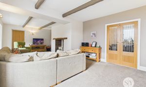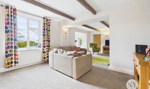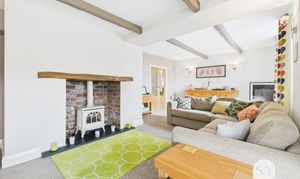 Carpet flooring, ceiling beams, uPVC double glazed window x2, wood burner, in fireplace with granite hearth and limestone surround, panel radiator.