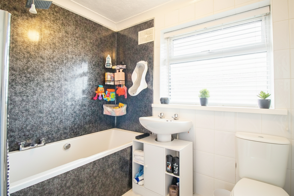The family bathroom is finished to a high standard, offering both functionality and a touch of luxury.