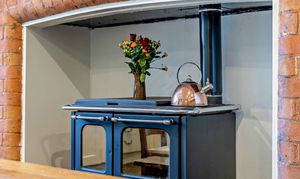 The kitchen is the hub of the house, with a wood-fired stove set within a characterful brick fireplace, providing a superb ambiance. Flagstone flooring runs through the kitchen from the adjacent sitting room creating a super flow. There is a good range of floor and wall-mounted units with solid oak work surfaces. Integrated appliances include a dishwasher and gas-fired range cooker with an electric oven as well as space for an American-style fridge freezer with plumbing for a water/ice line.