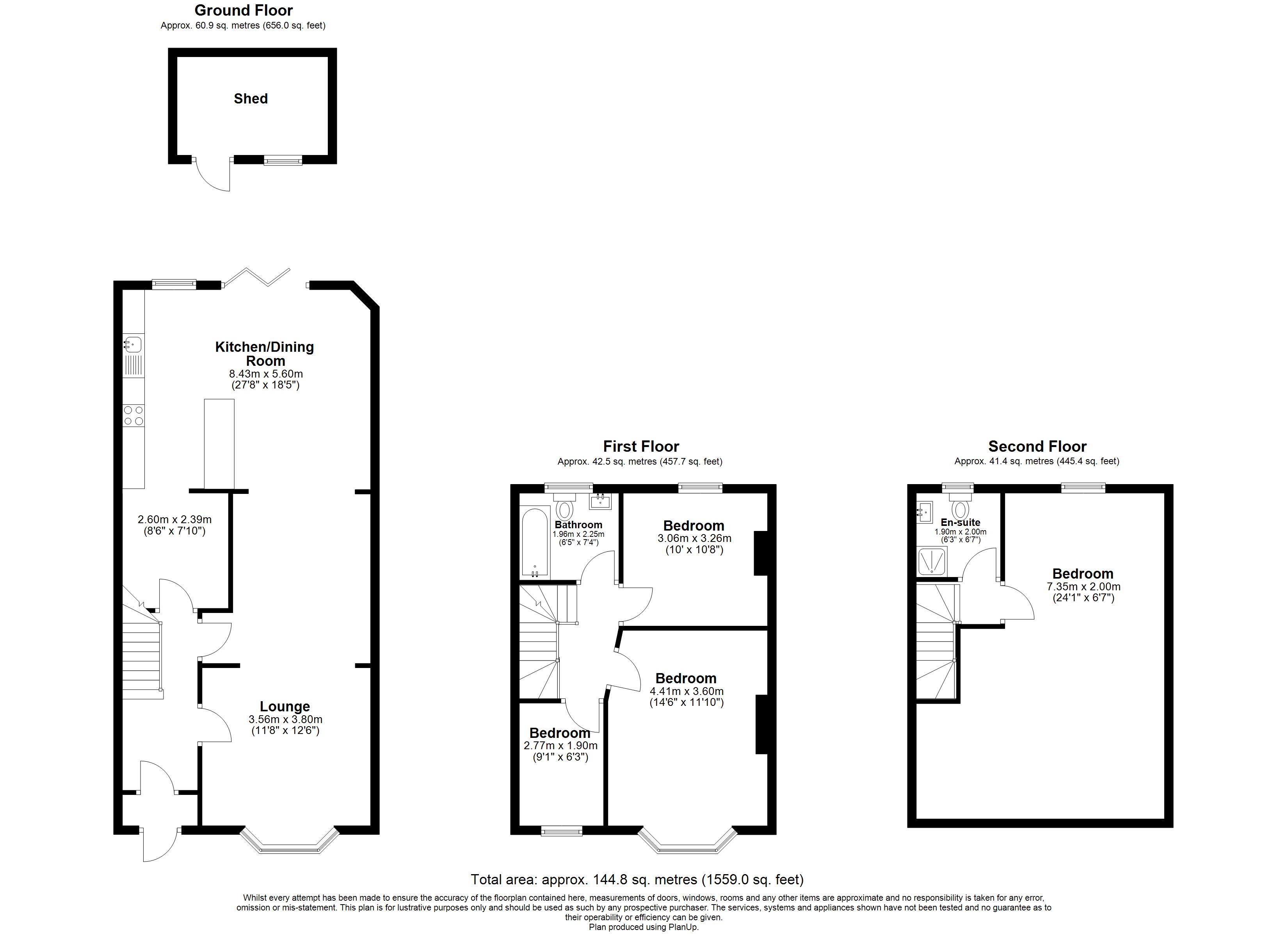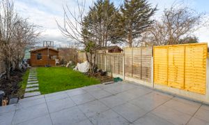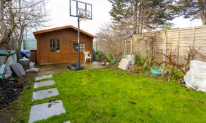 The rear garden also features a separate shed, providing useful storage or potential for a workshop or hobby space.
