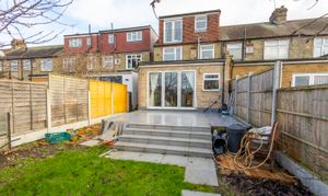 This spacious four bedroom home offers generous living space set across three floors, with a large open kitchen and dining area, well balanced bedrooms, and a private garden with a useful outbuilding. The layout works well for modern family living, with bright reception space at the front and a large entertaining area to the rear.