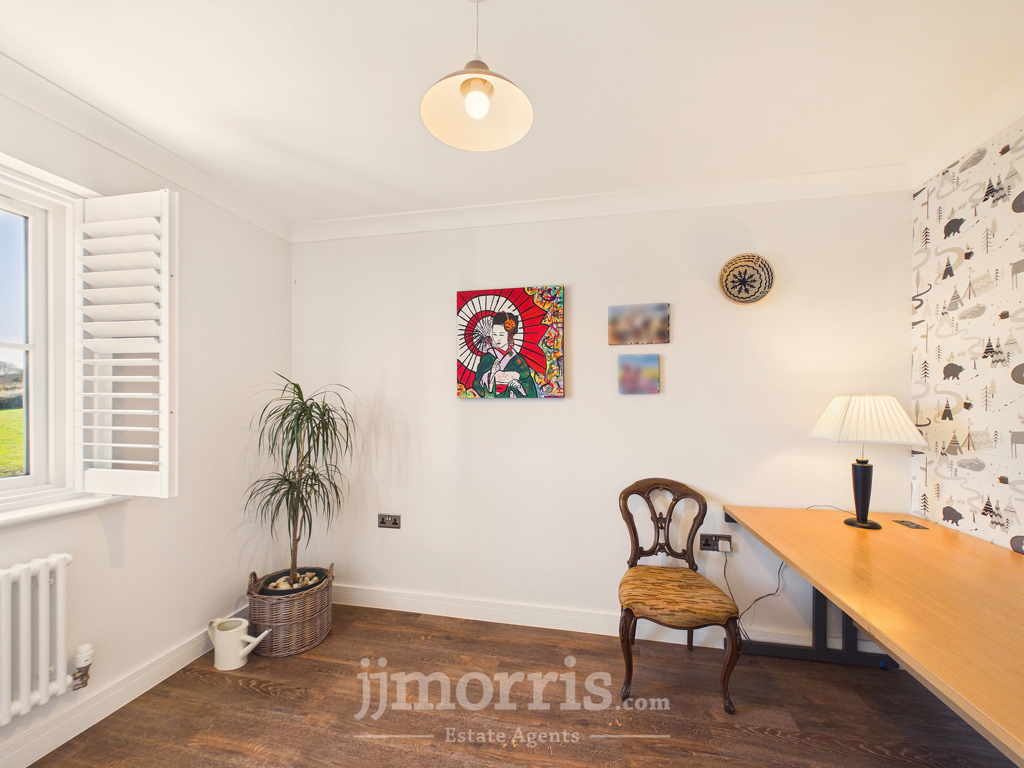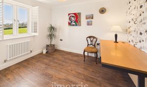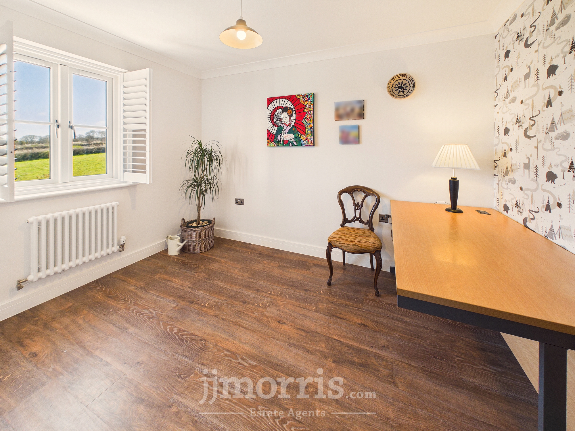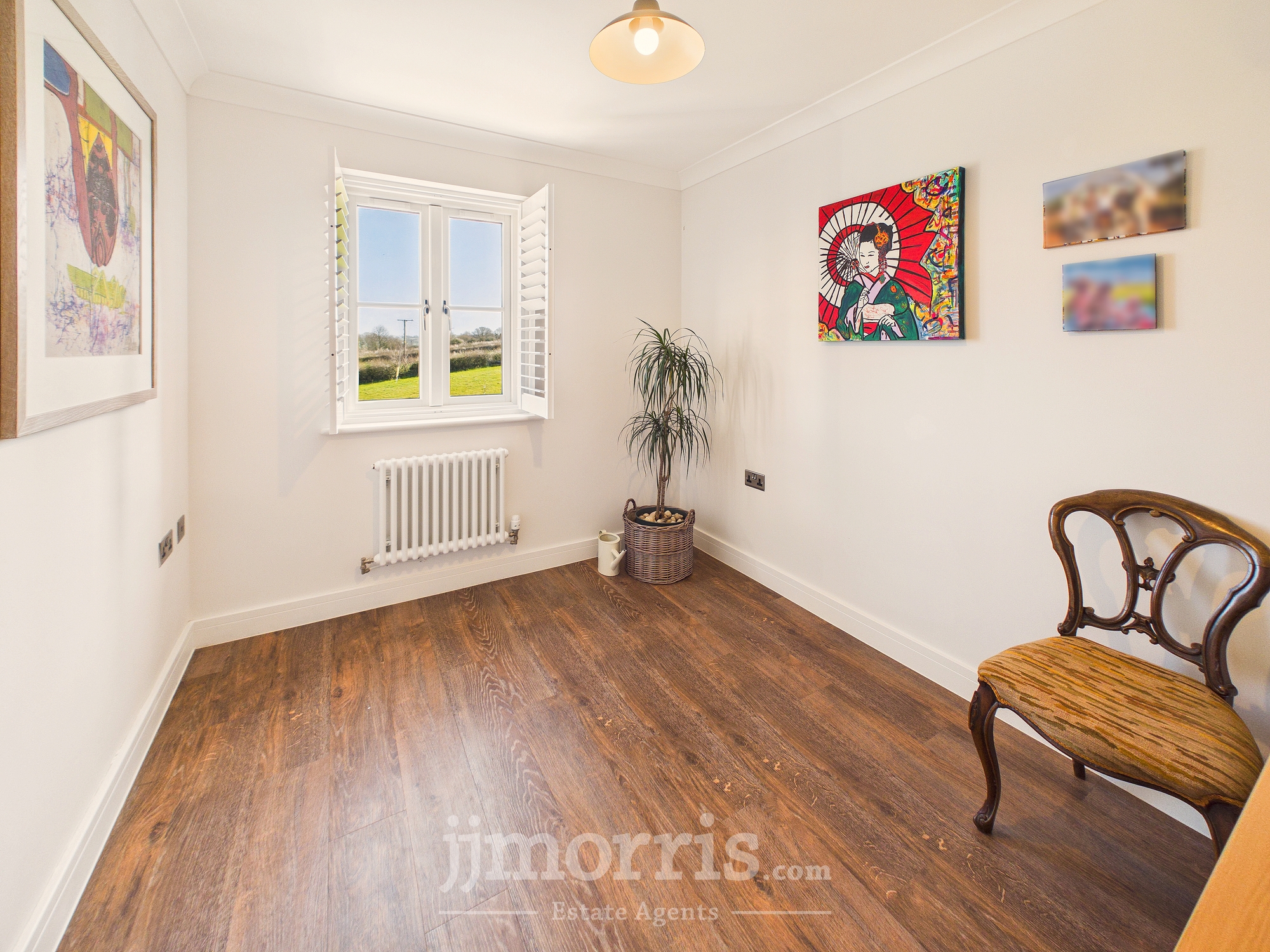 (maximum) With a Karndean Oak floor, designer column radiator, coved ceiling, ceiling light, double glazed window with shutters (affording delightful rural views), TV point and 6 power points.