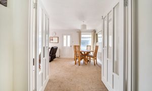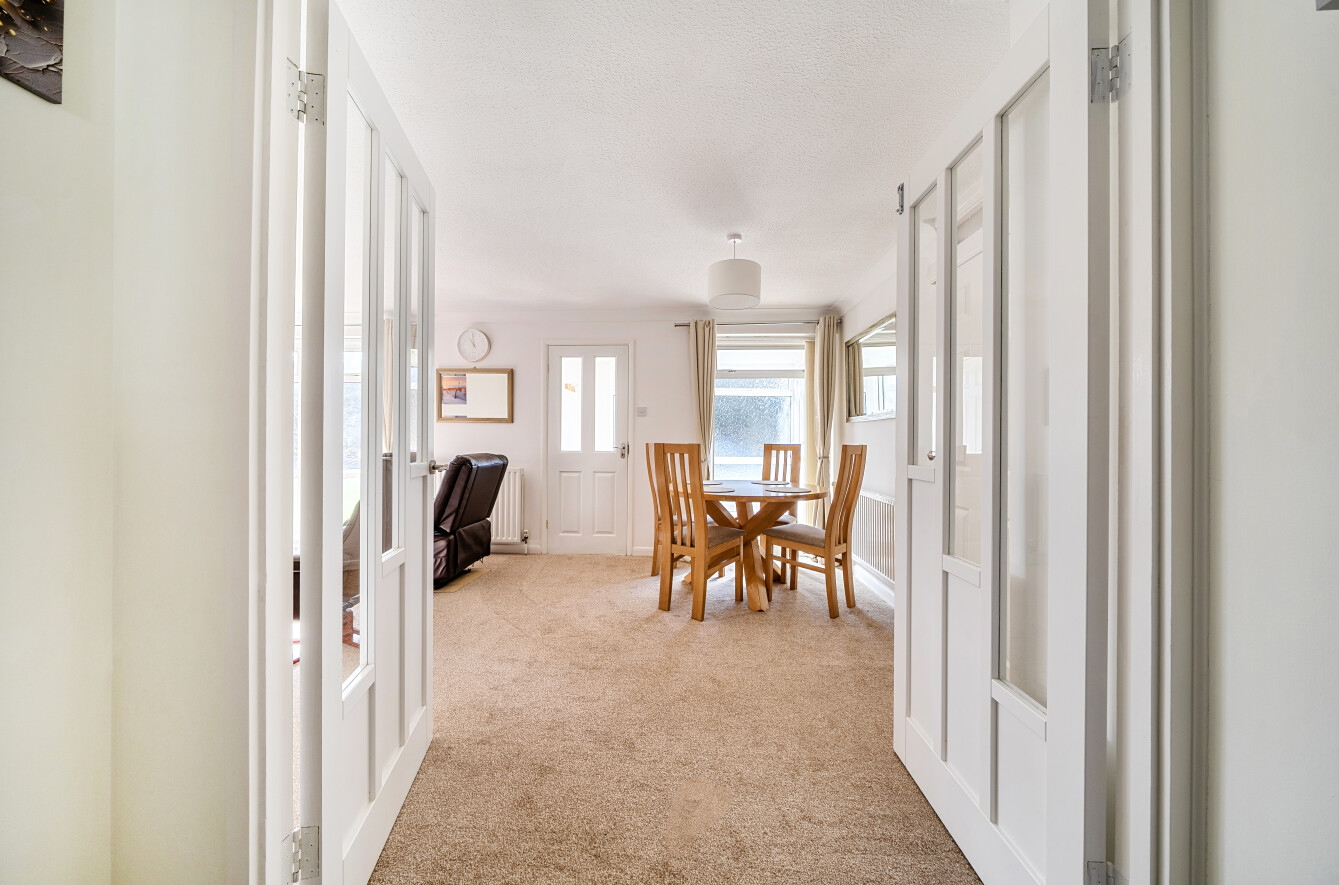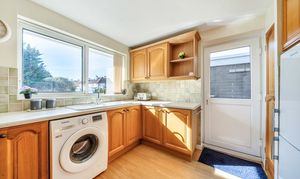 Step inside via the entrance lobby to discover a spacious and inviting layout that immediately feels like home, with every room thoughtfully arranged to maximise comfort and practicality. The heart of the property is the generous sitting-dining room, a wonderfully bright, south-facing room perfect for relaxing evenings or entertaining family and friends. The kitchen also enjoys a southerly aspect with an outlook to the front of the property, provides ample storage and workspace with integral oven, hob and filter hood. A door from here leads to the useful enclosed passageway and garden beyond.