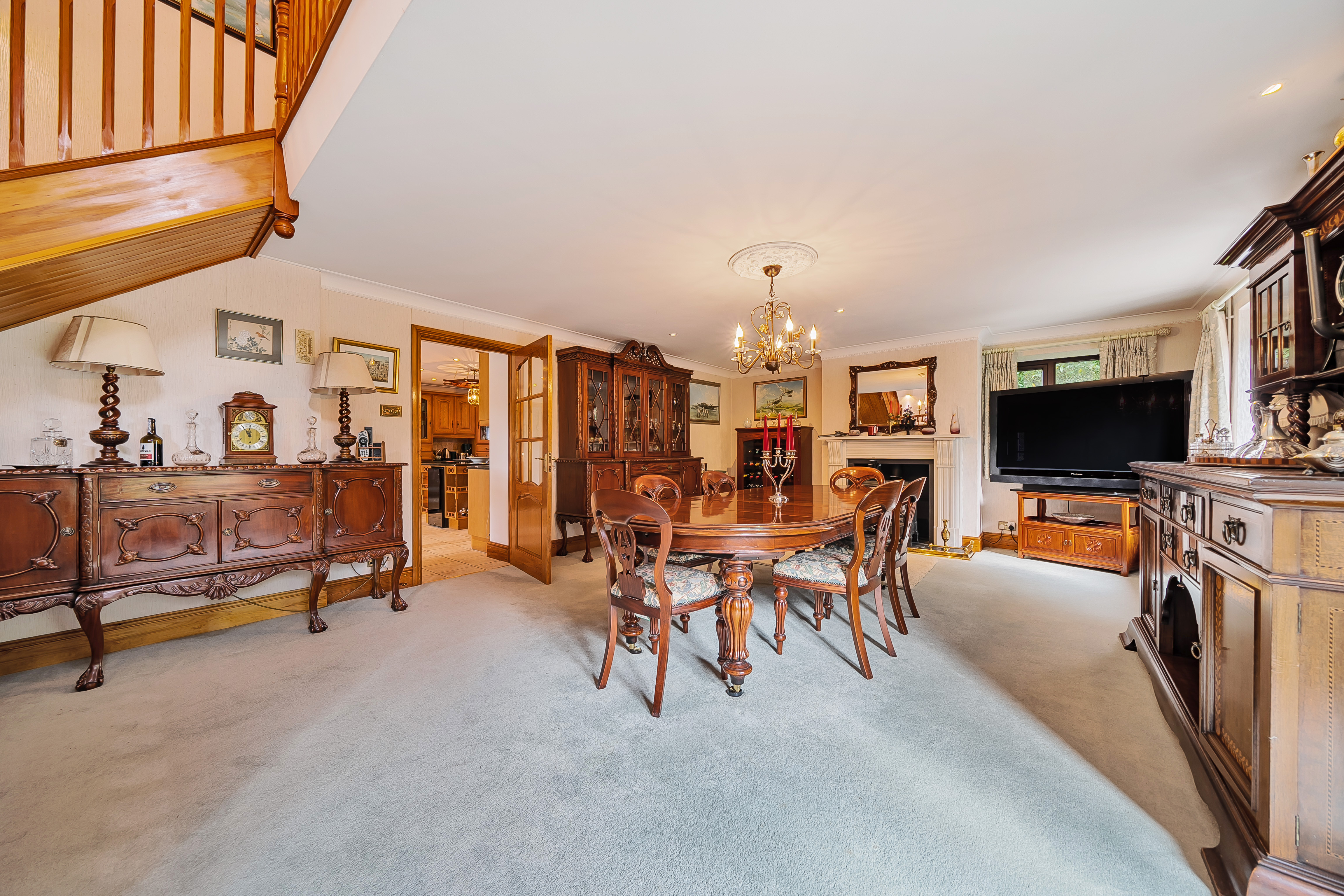 Towards the rear of the property lies the family room. A large and airy space with high ceilings and a generous inglenook fireplace it has French doors which seamlessly connect the room to the garden, blending indoor and outdoor living with ease.