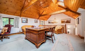 Completing the generous living accommodation, upstairs there are three sizable double bedrooms, all served by a spacious and well-appointed family bathroom. There is also a large study with a vaulted pine-clad ceiling which provides an ideal workspace.