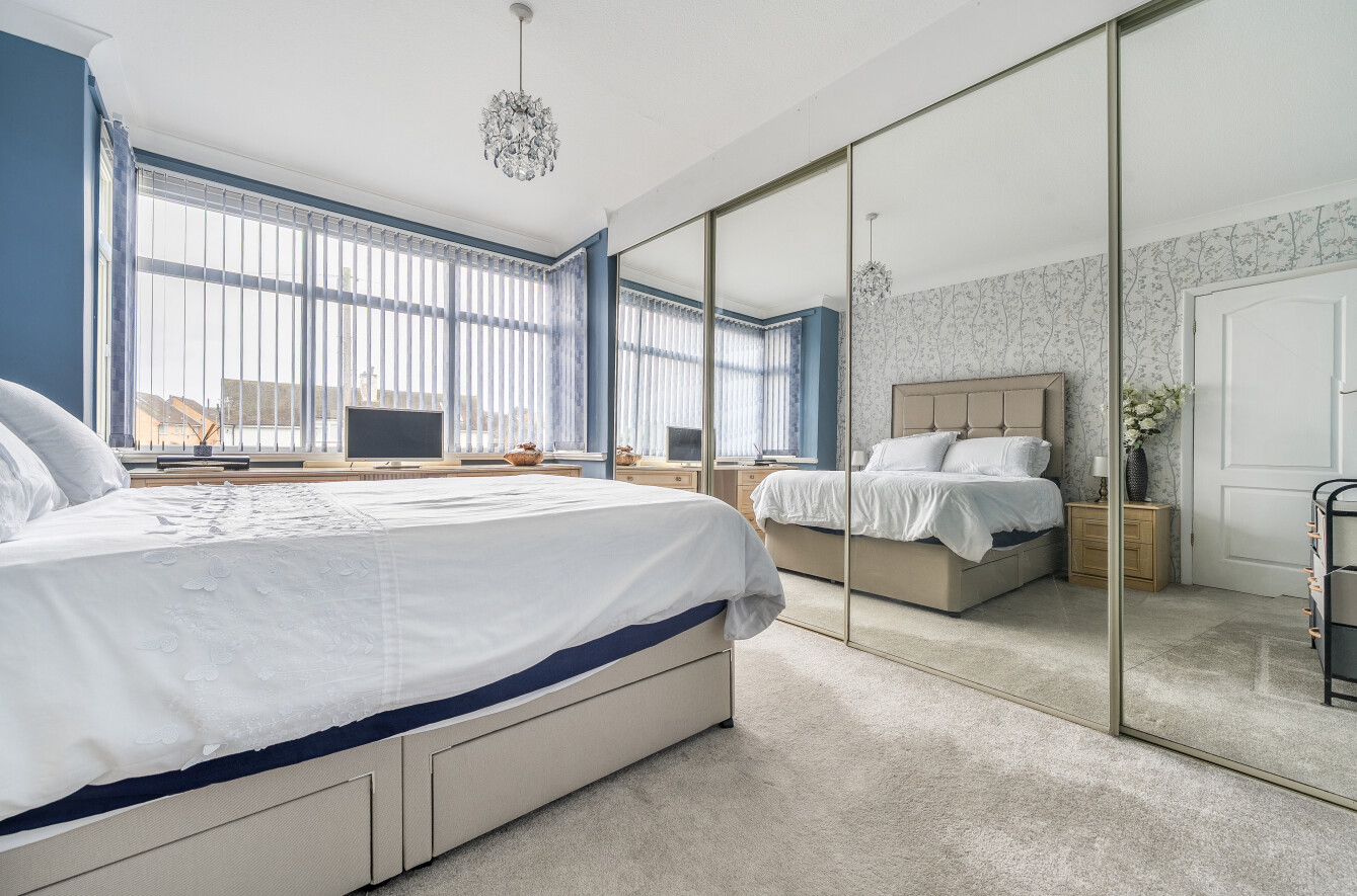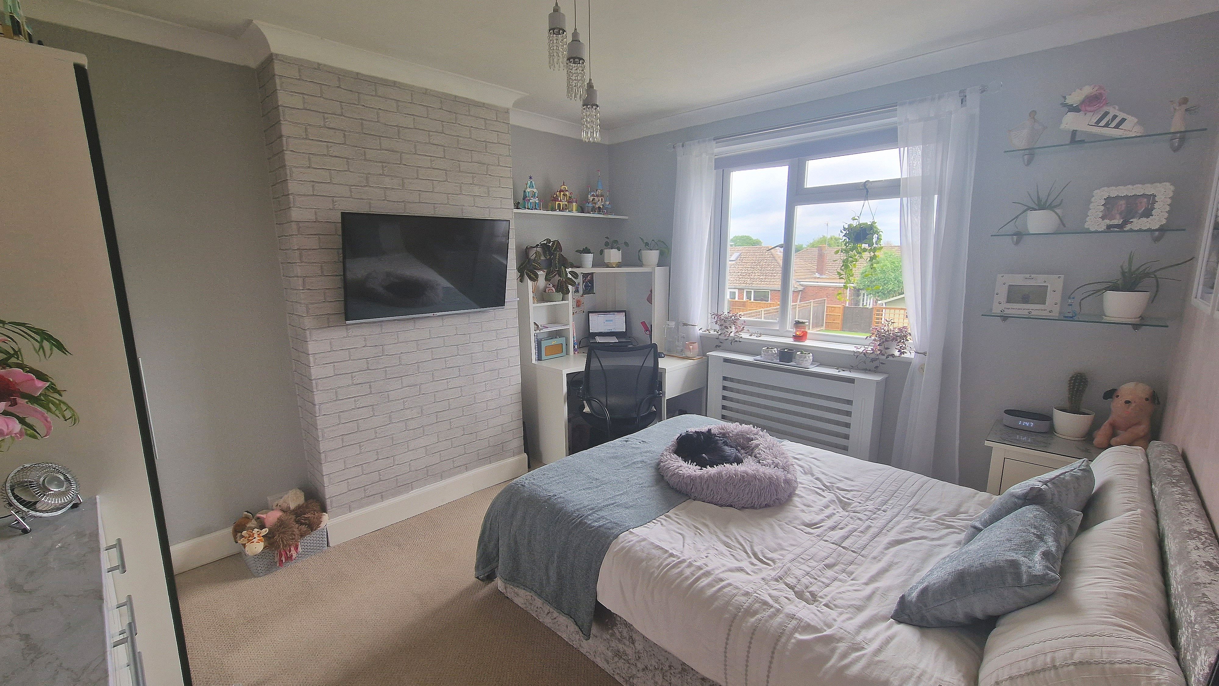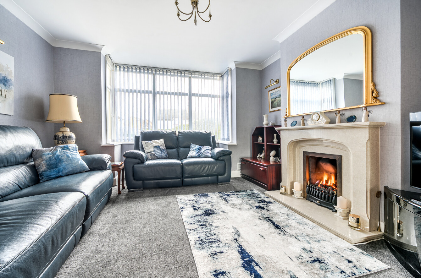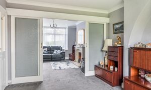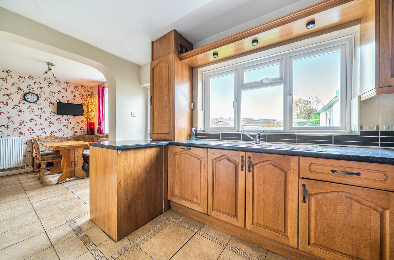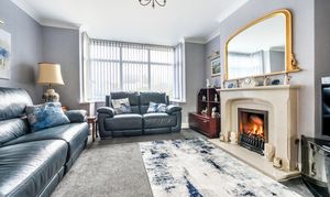 The property welcomes you with a spacious entrance hall, setting the tone for the light and airy interiors throughout. The dual aspect sitting and dining room is bright and inviting, featuring a deep bay window in the sitting area that floods the room with natural light and a traditional gas fire, providing a cosy focal point. The dining area opens via sliding double-glazed patio doors onto the rear garden, offering a seamless connection between indoor and outdoor living.