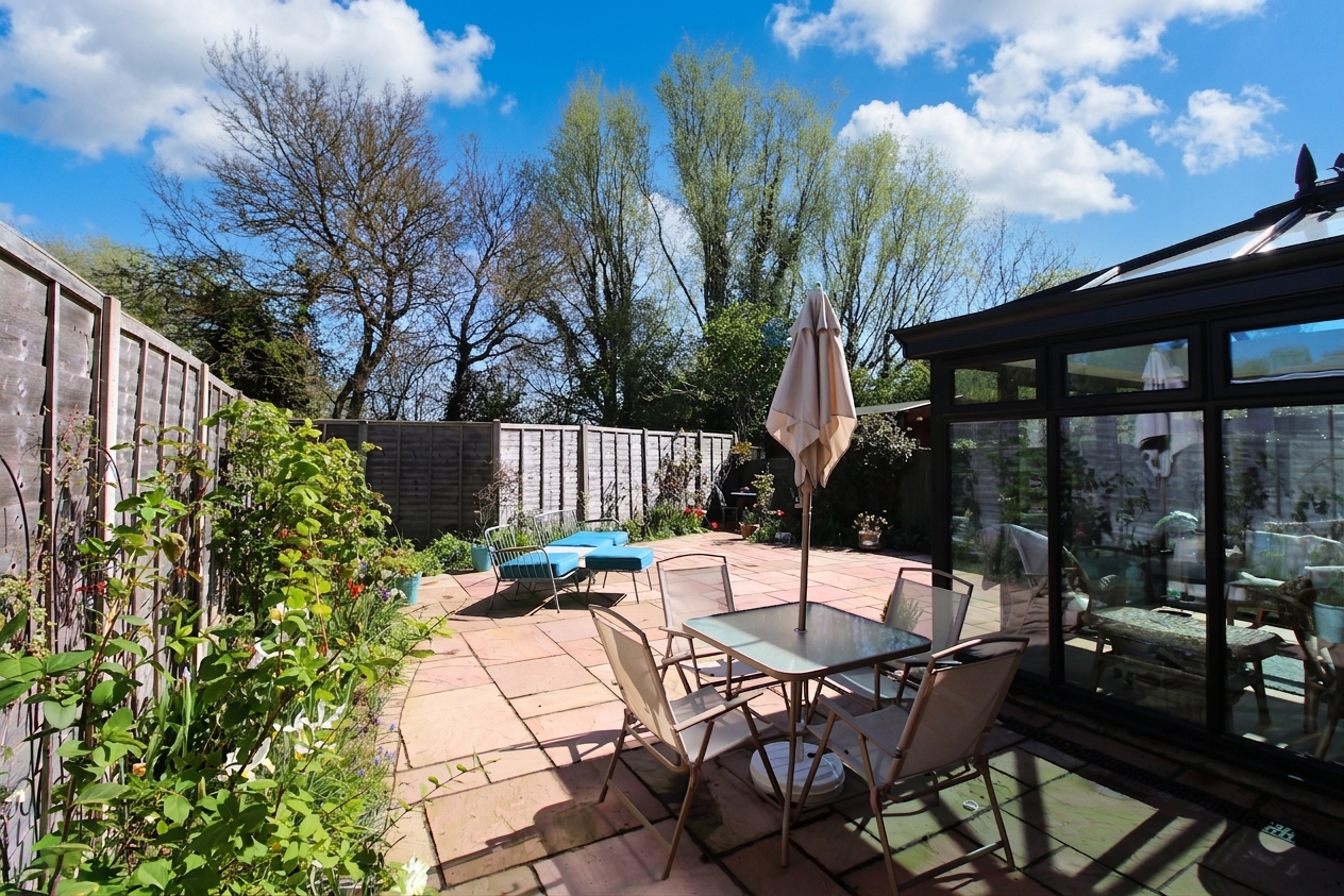 - Low-maintenance rear garden enjoying sun throughout the day