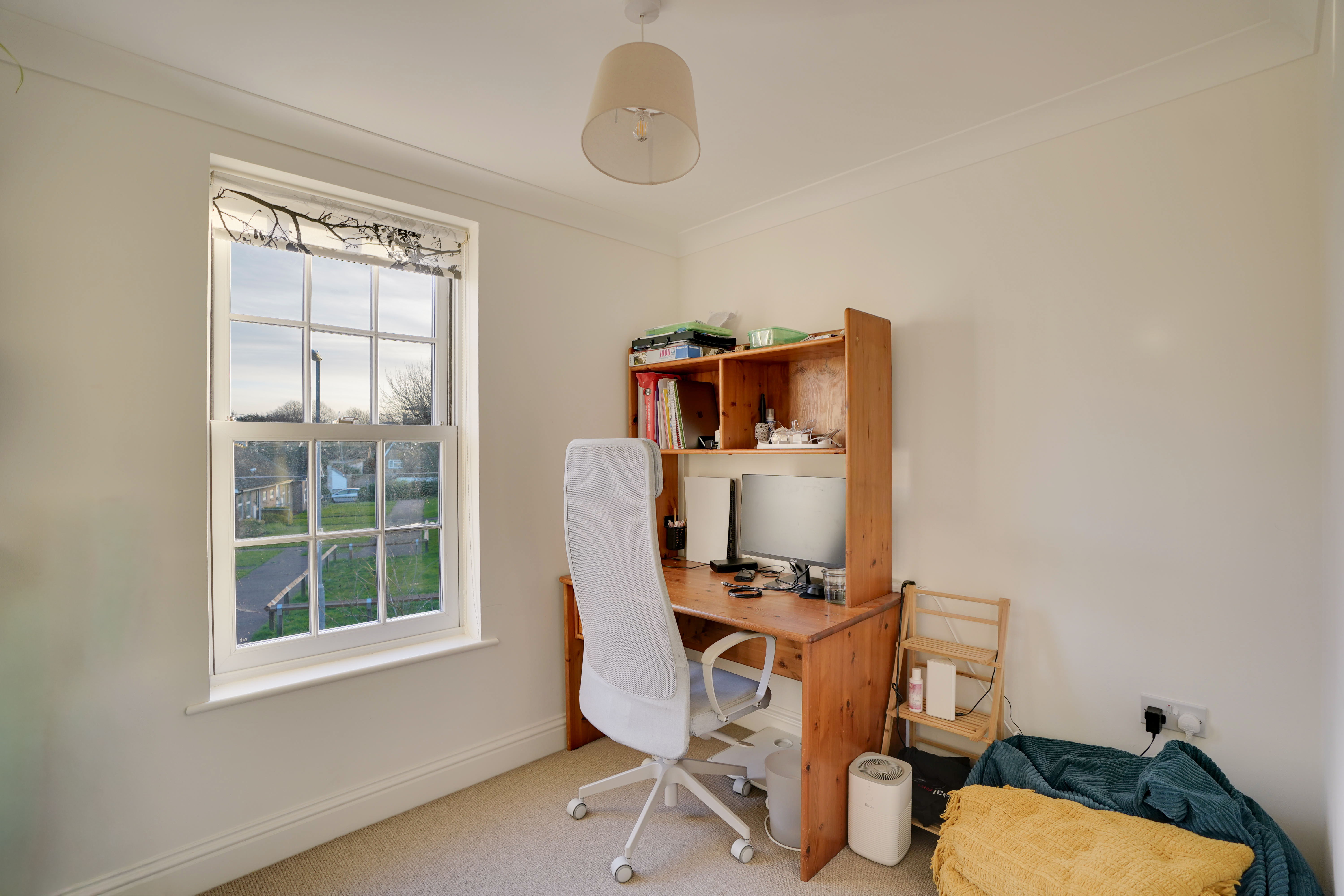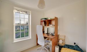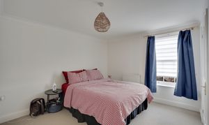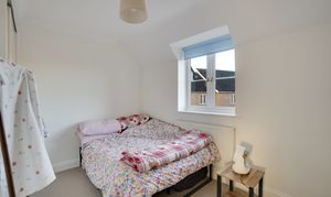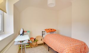 Bedroom four, although the smallest, is still a good-sized room capable of accommodating a double bed. Bedroom three is adjacent and also suitable for a double bed. Bedroom two, located on the opposite side of the landing, overlooks the front of the property and features a built-in double wardrobe with sliding doors set within an alcove.