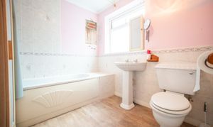With vinyl flooring, wash hand basin, double glazed window, bath tub, shower attachment and WC.