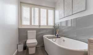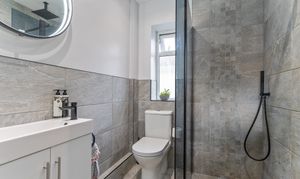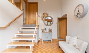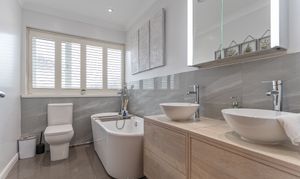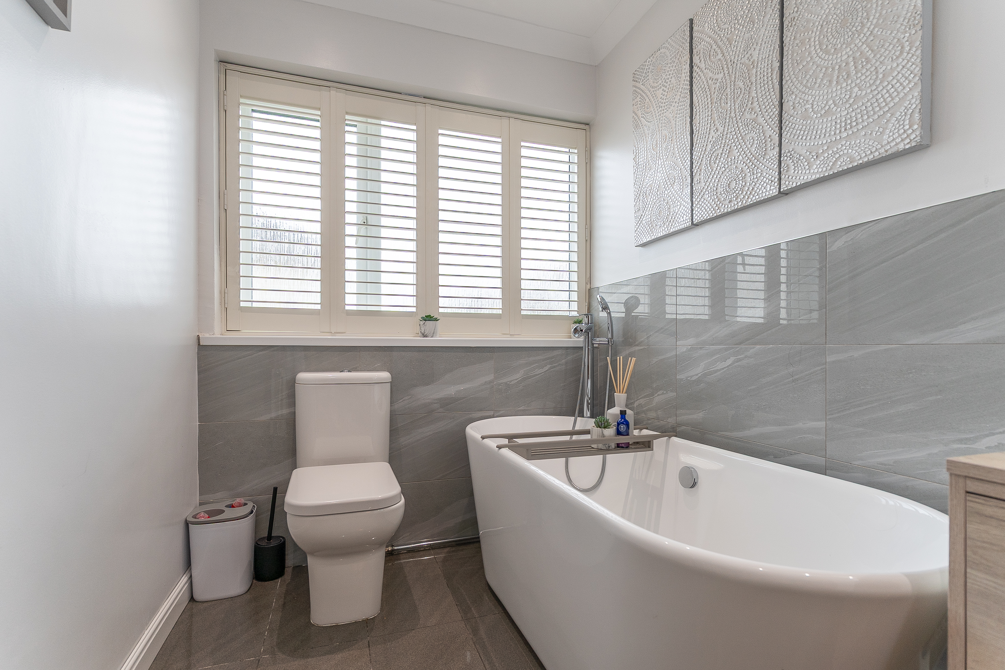 Along the main hallway as you enter the property are three well-proportioned bedrooms, all capable of accommodating double beds and finished in a neutral, modern décor. Completing this level is the family bathroom, which is beautifully designed with a double hand basin, WC, and bath, creating a stylish and functional space.