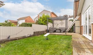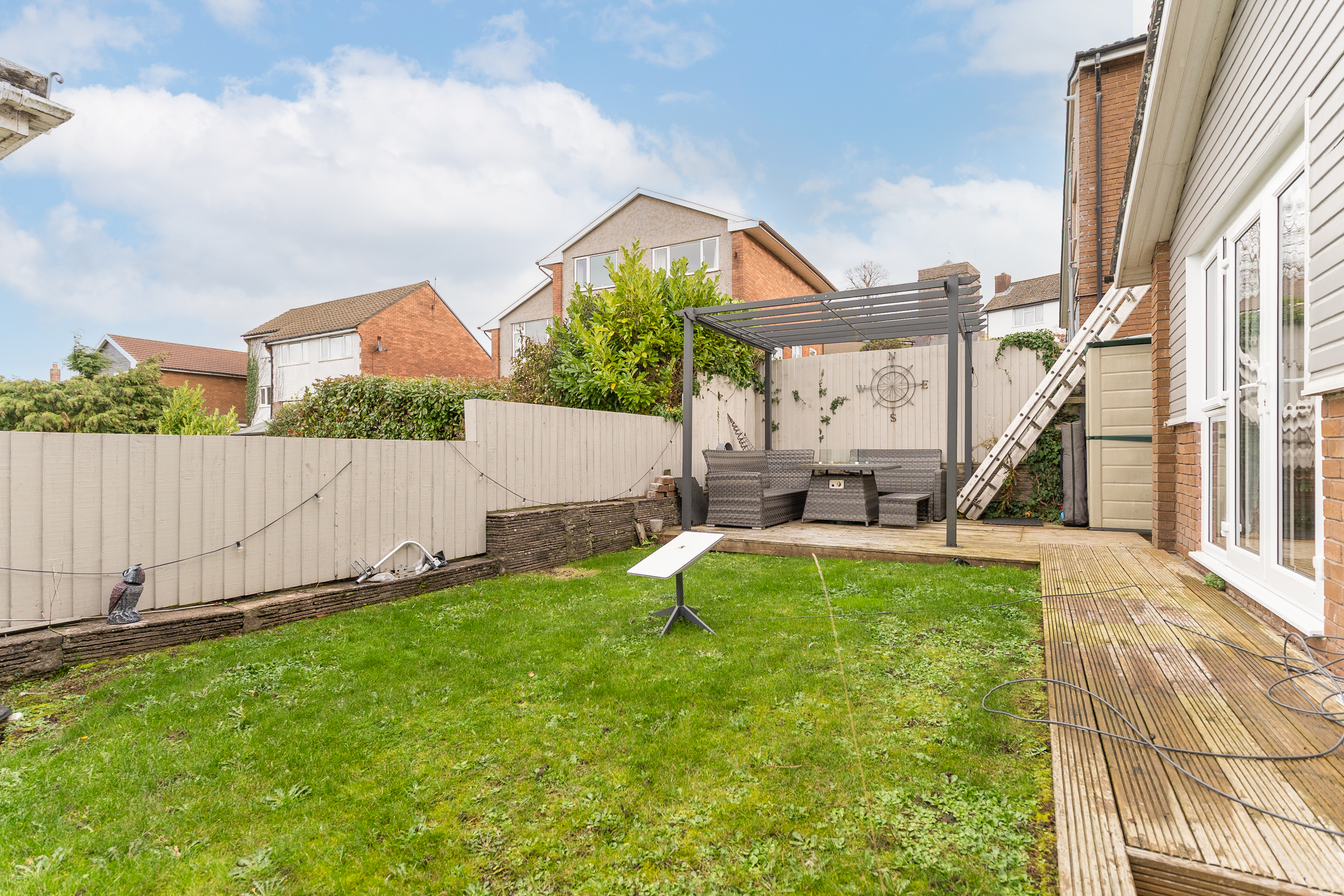 Externally, the property is set on a generous plot with extensive outdoor space. To the front, a large driveway provides ample off-road parking and leads to the garage. The property is surrounded by well-maintained gardens on both sides, featuring lawns, mature planting, and multiple seating areas, perfect for outdoor dining, entertaining, or simply enjoying the beautiful surroundings and views.