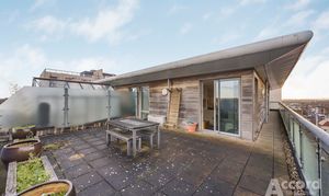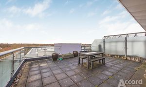 Offered with no onward chain, this two-bedroom penthouse apartment in Axiom Apartments gives you impressive outside space, a private parking space and sweeping views across London from a private wrap around roof terrace. Set on the top floor of this gated development with concierge and lift access, it is a bright, spacious home right in the centre of Romford.