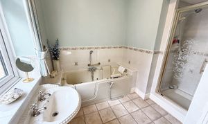 The large family bathroom includes a separate shower, catering to the needs of a modern family.
