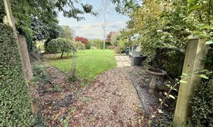 The generously sized rear garden offers a tranquil retreat, with extensive views overlooking picturesque fields, offering a sense of peace and serenity.