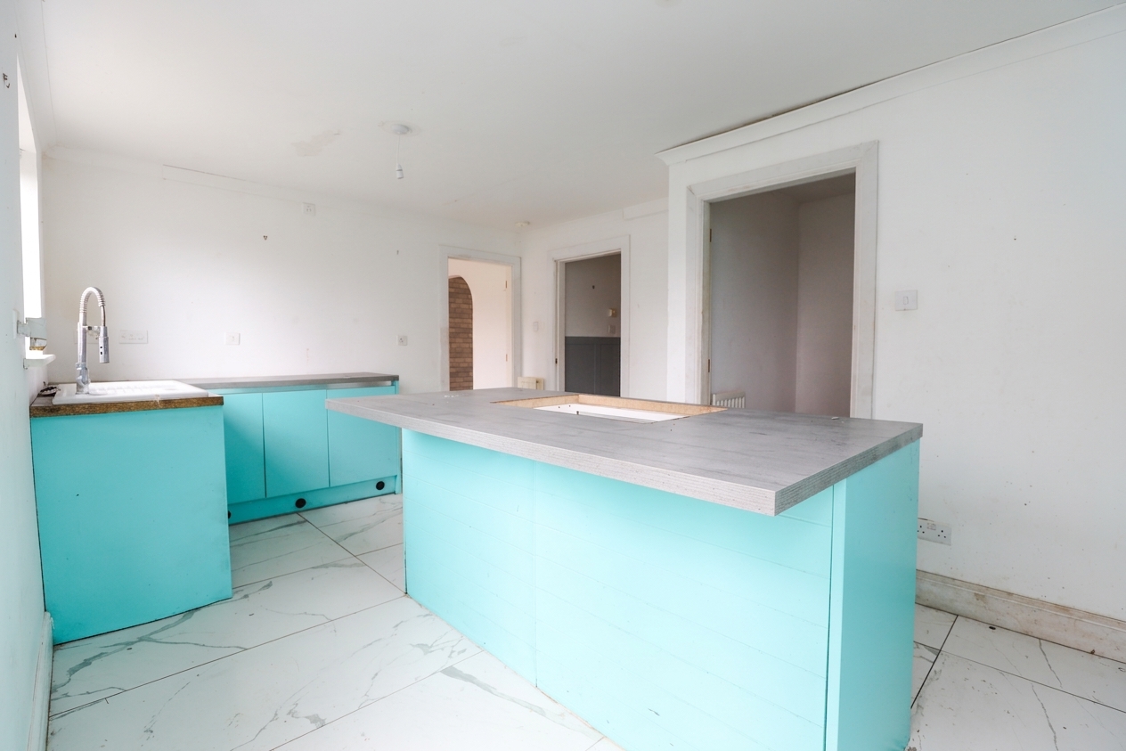 The adjoining kitchen, accessible from the dining room, awaits your creative vision, offering ample scope for a culinary hub tailored to modern family living. A practical downstairs WC enhances convenience for both residents and guests.