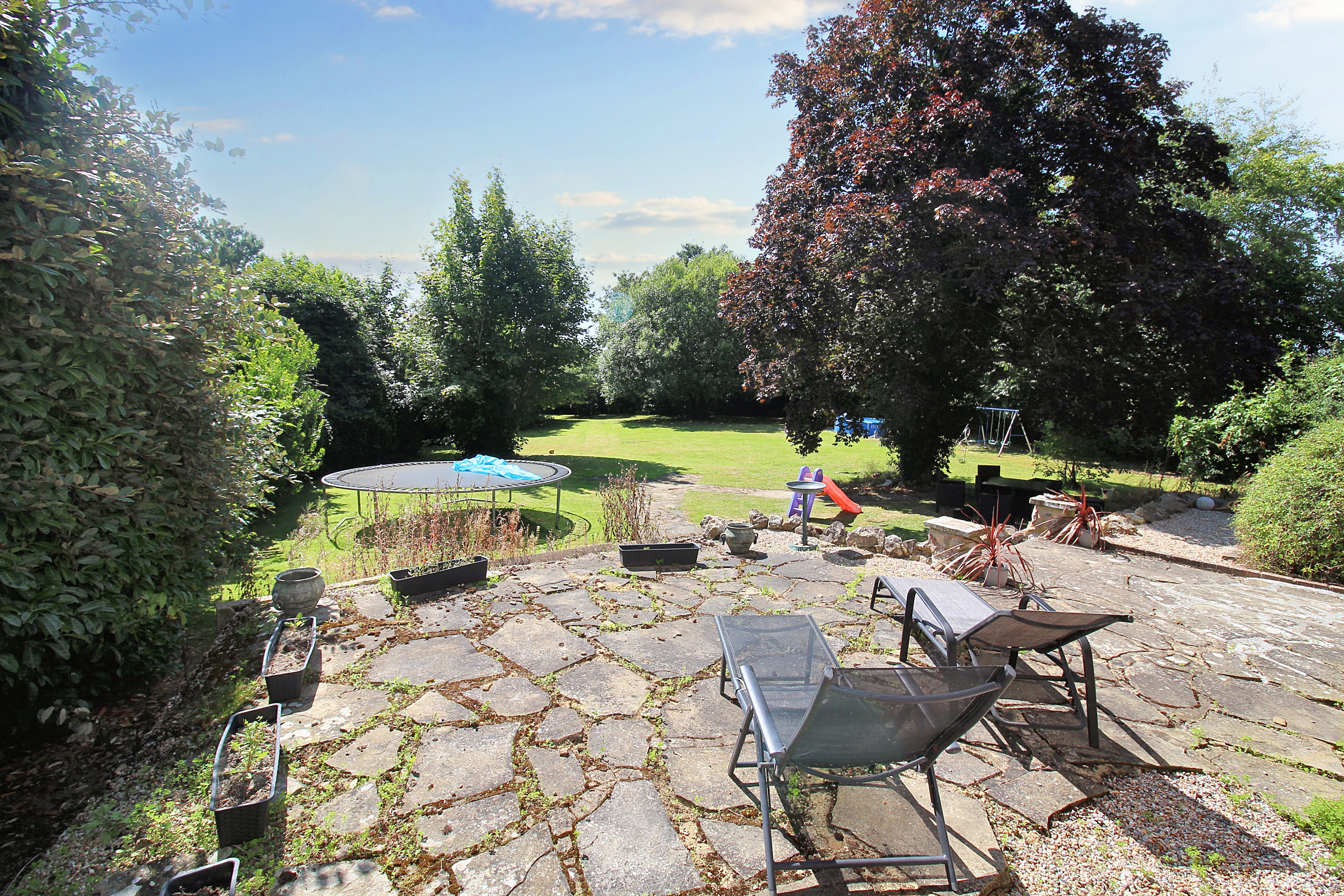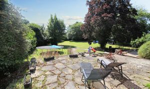 Large well maintained established garden which is mainly laid to lawn and a patio area.