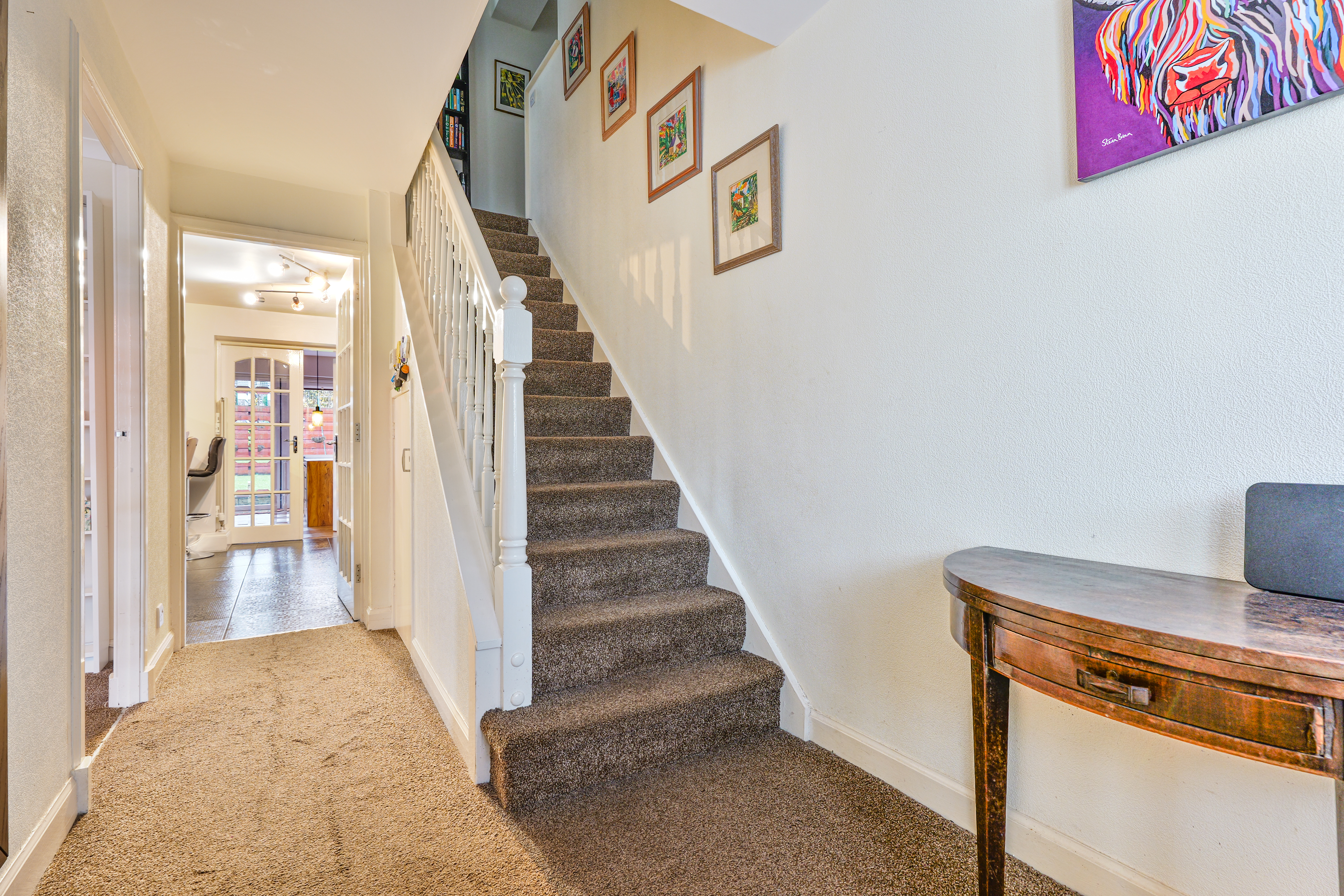 The property features a well maintained garden laid predominantly to lawn, complemented by a paved area ideal for outdoor entertaining. The areas are divided by a small wall with planted border which add colour and interest. Side gated access provides convenient access to the public park.